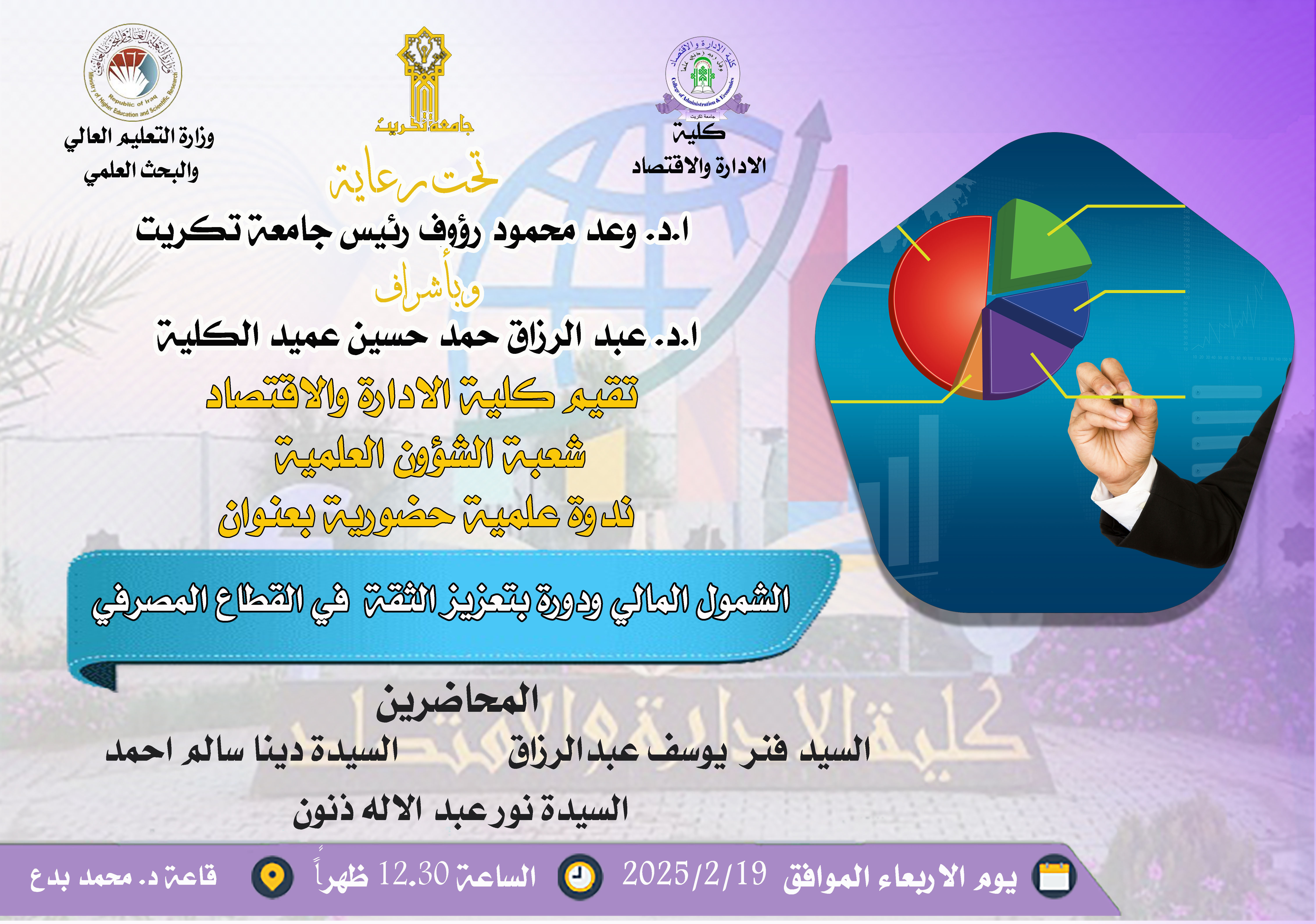 ندوة علمية حضورية بعنوان الشمول المالي ودورة بتعزيز الثقة في القطاع المصرفي
