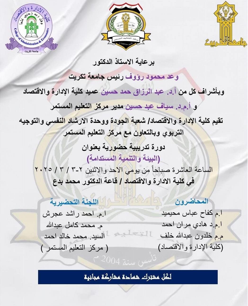 دورة تدريبية حضورية بعنوان البيئة والتنمية المستدامة