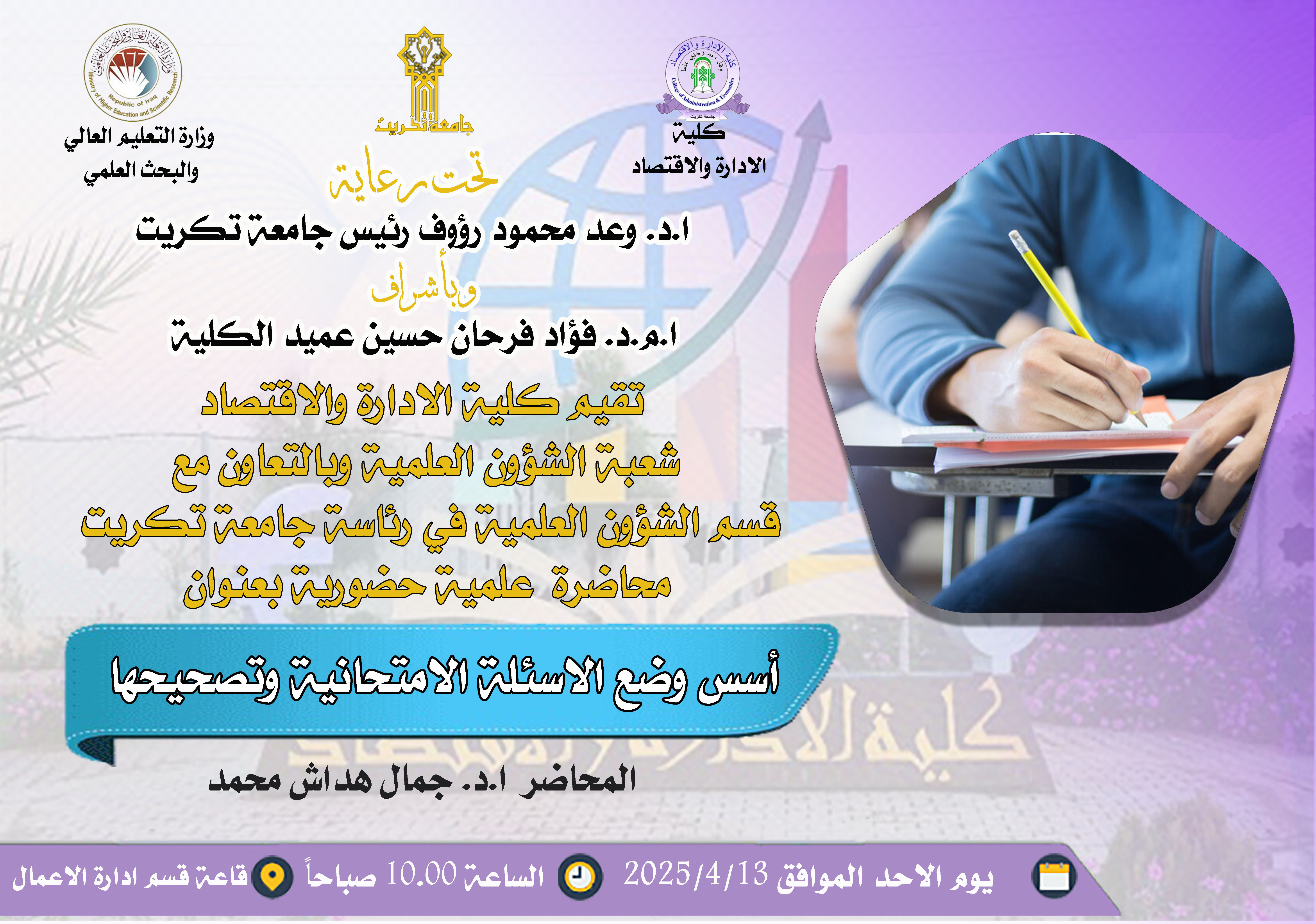 محاضرة علمية بعنوان أسس وضع الأسئلة الامتحانية وتصحيحها