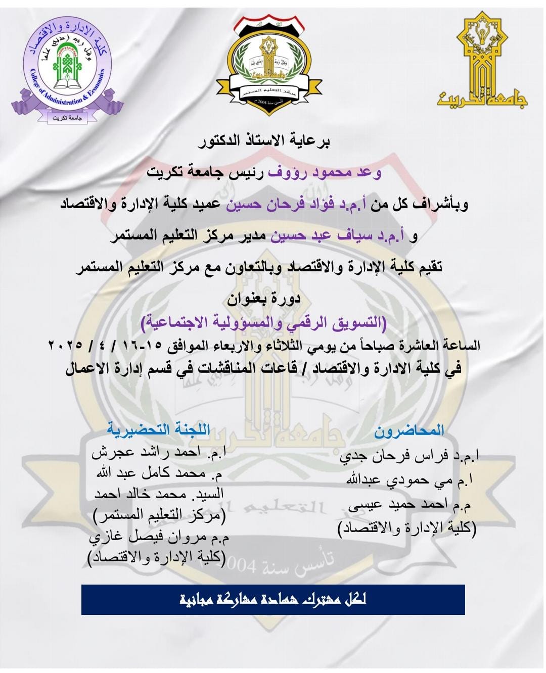 دورة بعنوان التسويق الرقمي و المسؤولية الاجتماعية