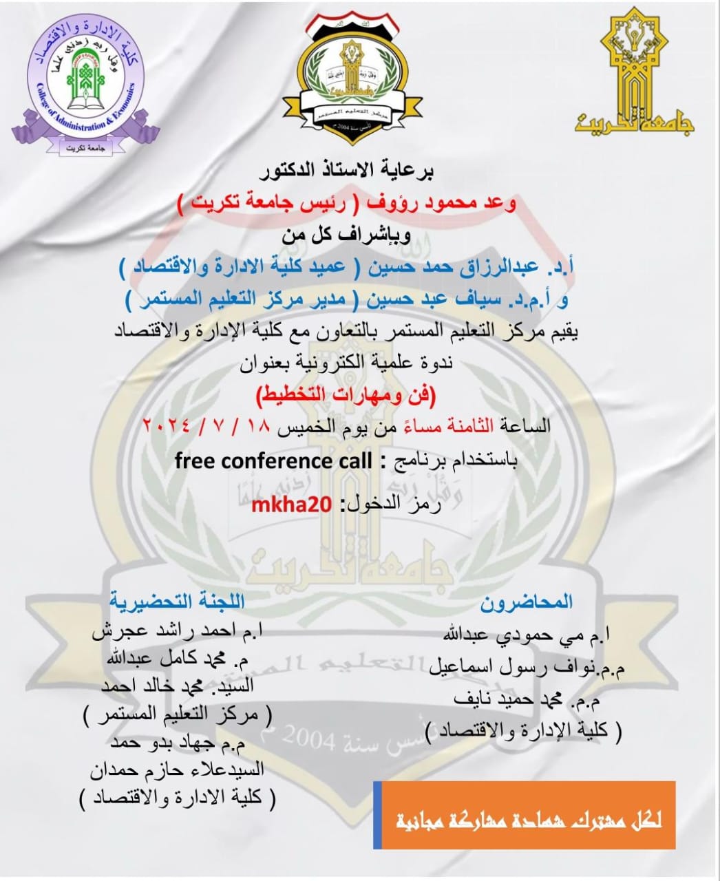 ندوة علمية الكترونية بعنوان فن ومهارات التخطيط