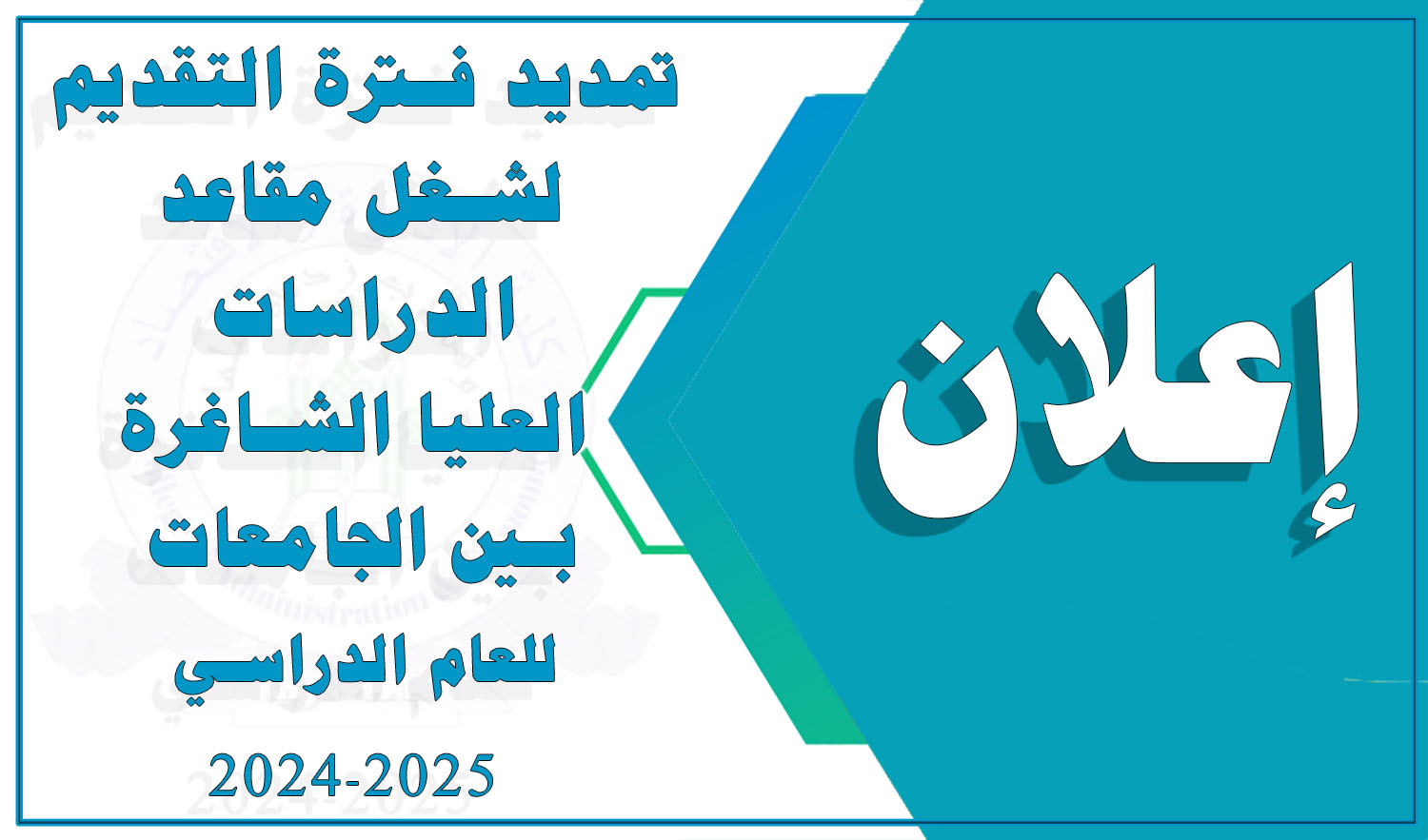استناداً إلى كتاب وزارة التعليم العالي والبحث العلمي / دائرة البحث والتطوير / قسم الدراسات العليا ذي العدد ب ت 5 /9202 الصادر بتاريخ 2024/9/19، تعلن كلية الإدارة والاقتصاد / جامعة تكريت عن تمديد فترة التقديم لشغل مقاعد الدراسات العليا الشاغرة بين الجامعات للعام الدراسي 2024-2025.