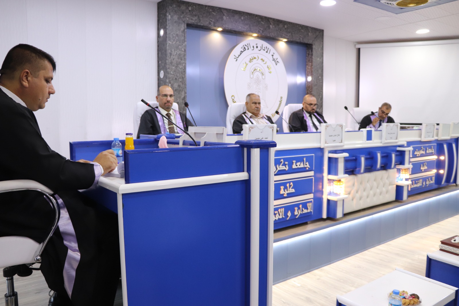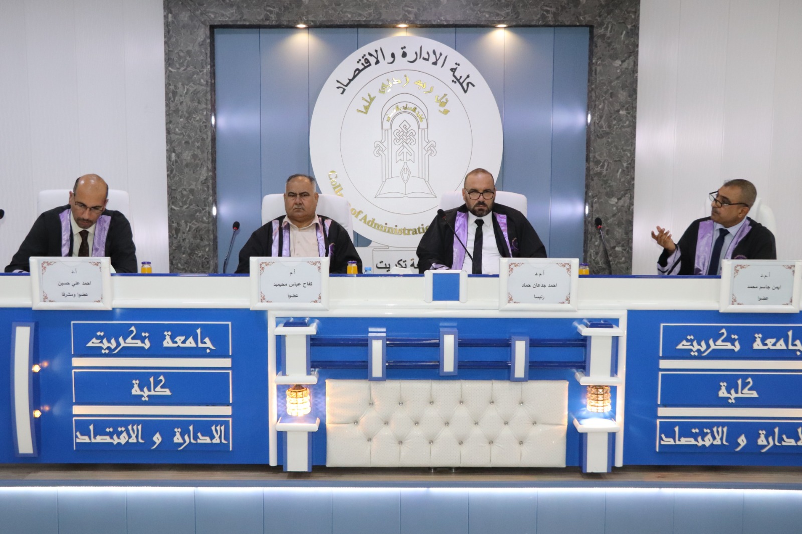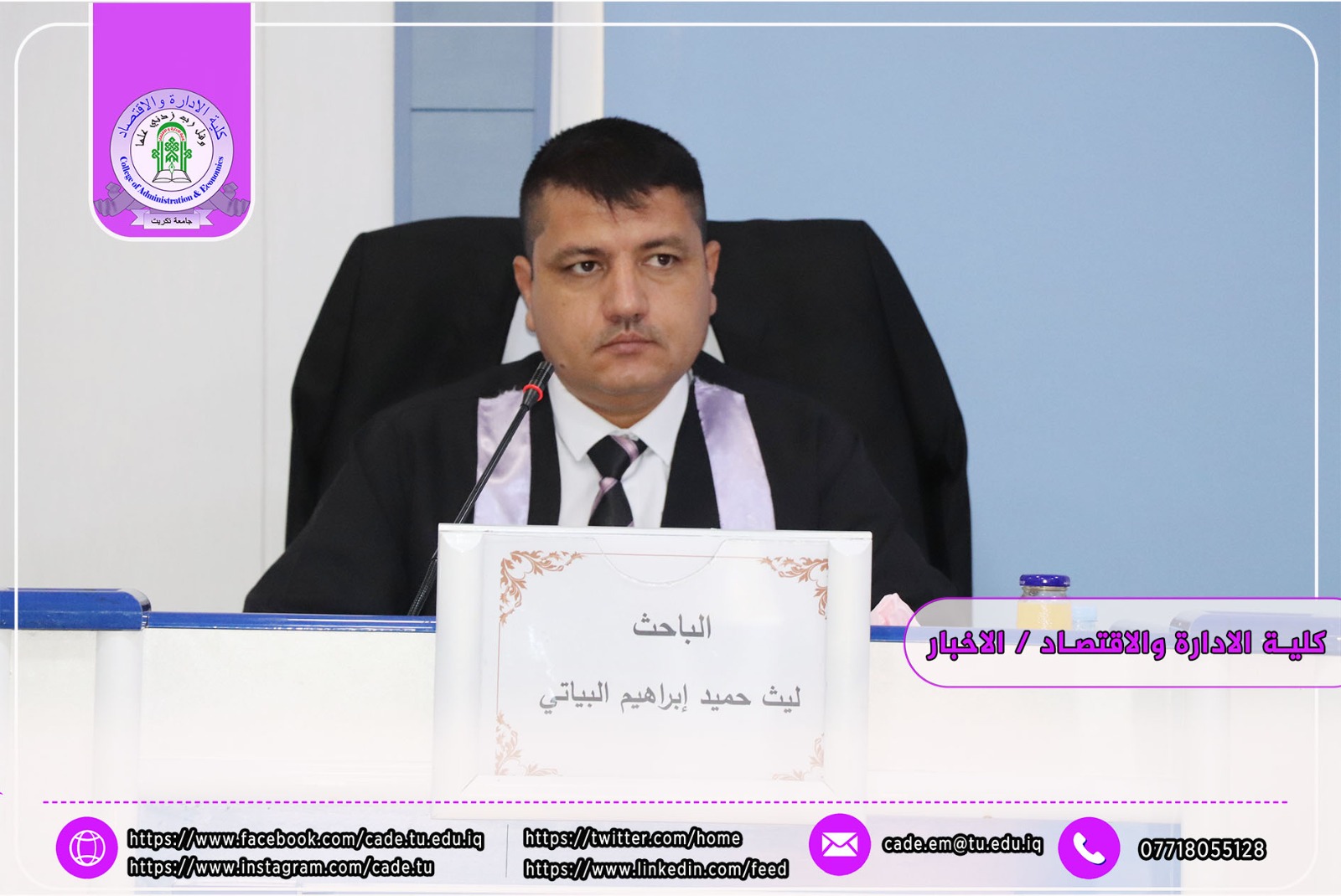 نوقشـت في كليـة الإدارة والاقتصاد رسالة الدبلوم العالي المعادل للماجستير في التخطيط الاستراتيجي للطالــب ليث حميد ابراهيم (ترسيخ ابعاد المعمارية الاستراتيجية عبر سلوكيات القيادة التمكينية: دراسة تحليلية لآراء عينة من العاملين في المديرية العامة للتربية فب محافظة كركوك) بأشــراف ا.د. احمد علي حسين.