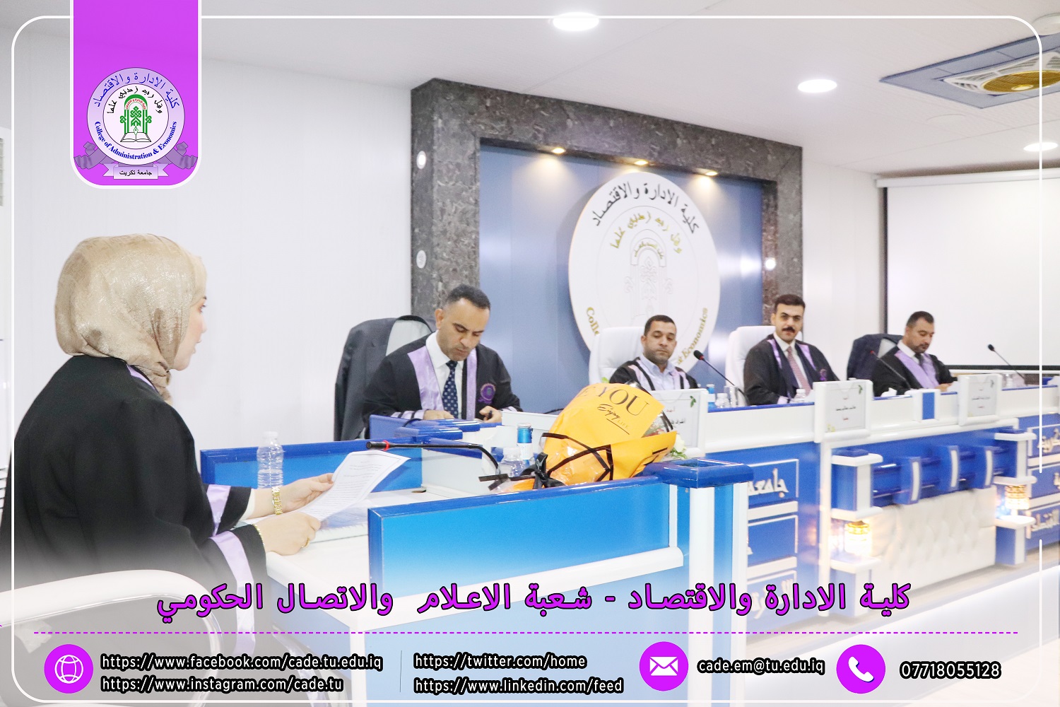 نوقشـت في كليـة الإدارة والاقتصاد رسالة الماجستير في العلوم المحاسبية للطالــبة رحمة حميد صبحي (أثر خصائص لجان التدقيق في تحسين جودة التقارير المالية وانعكاسها على العوائد غير العادية للأسهم (دراسة تطبيقية على عينة من الشركات العراقية المدرجة في سوق العراق للأوراق المالية) بأشــراف ا. ا.م.د. أشرف هاشم فارس.