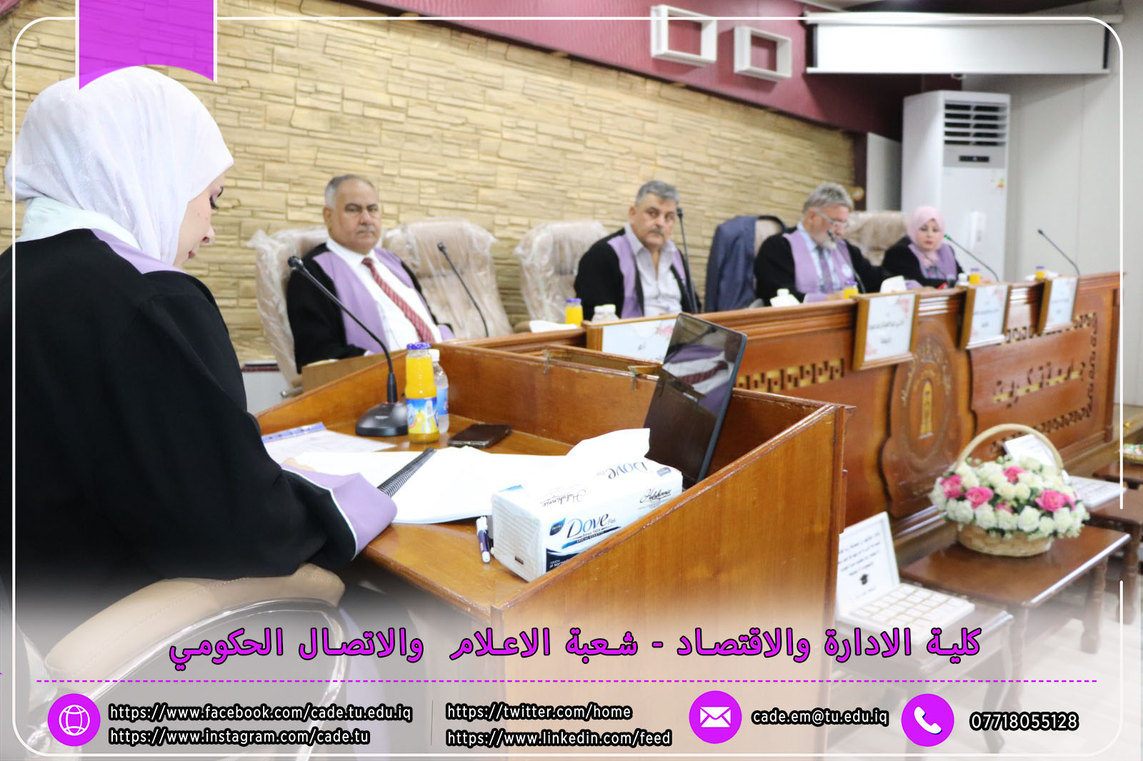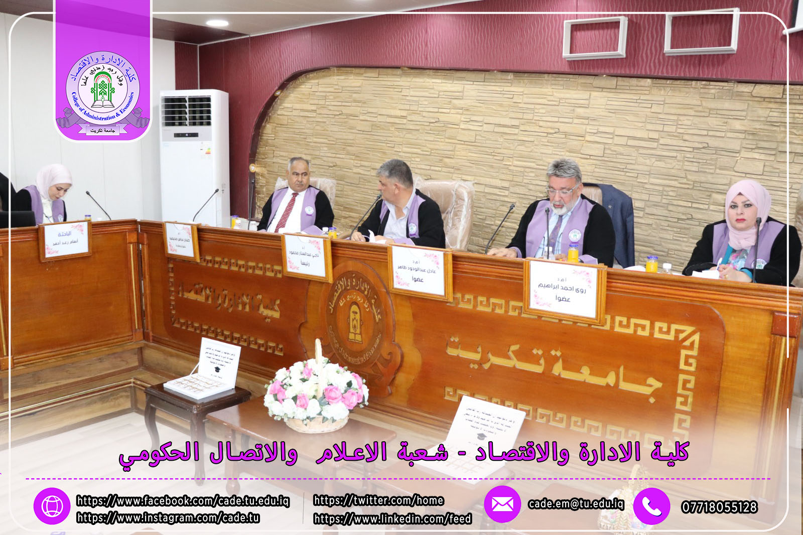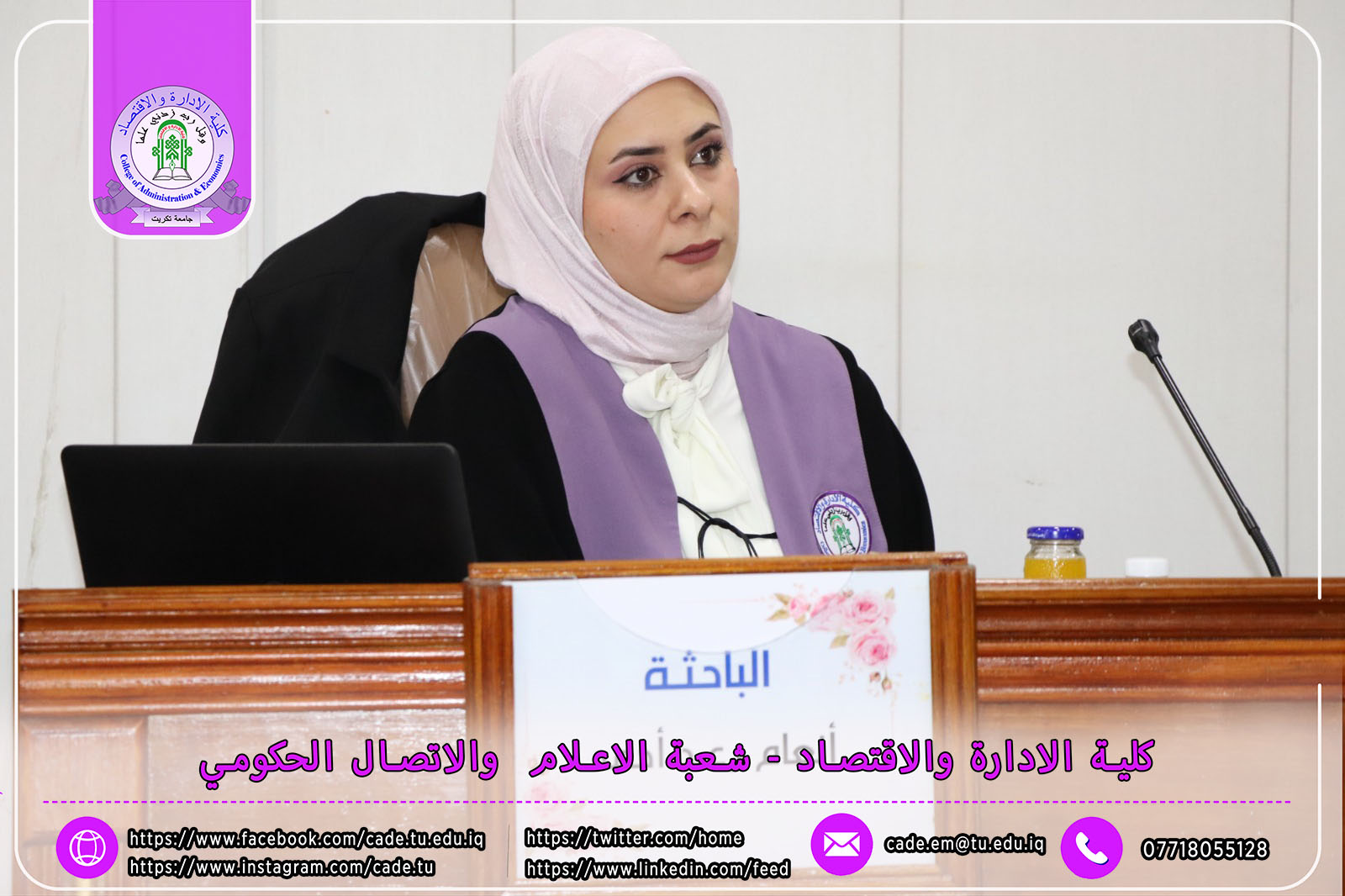 نوقشت في كلية الإدارة والاقتصاد / قسم ادارة الاعمال / رسالة الماجستير في العلوم الادارية للطالــبة انعام رعد احمد الموسومة (( دور الاستشراف الاستراتيجي في تحقيق التفوق المنظمي بتوسط ممارسات ادارة المعرفة : دراسة استطلاعية لآراء عينة من العاملين في المديرية العامة للتربية في محافظة صلاح الدين )) بأشراف ا.م. كفاح عباس محيميد.