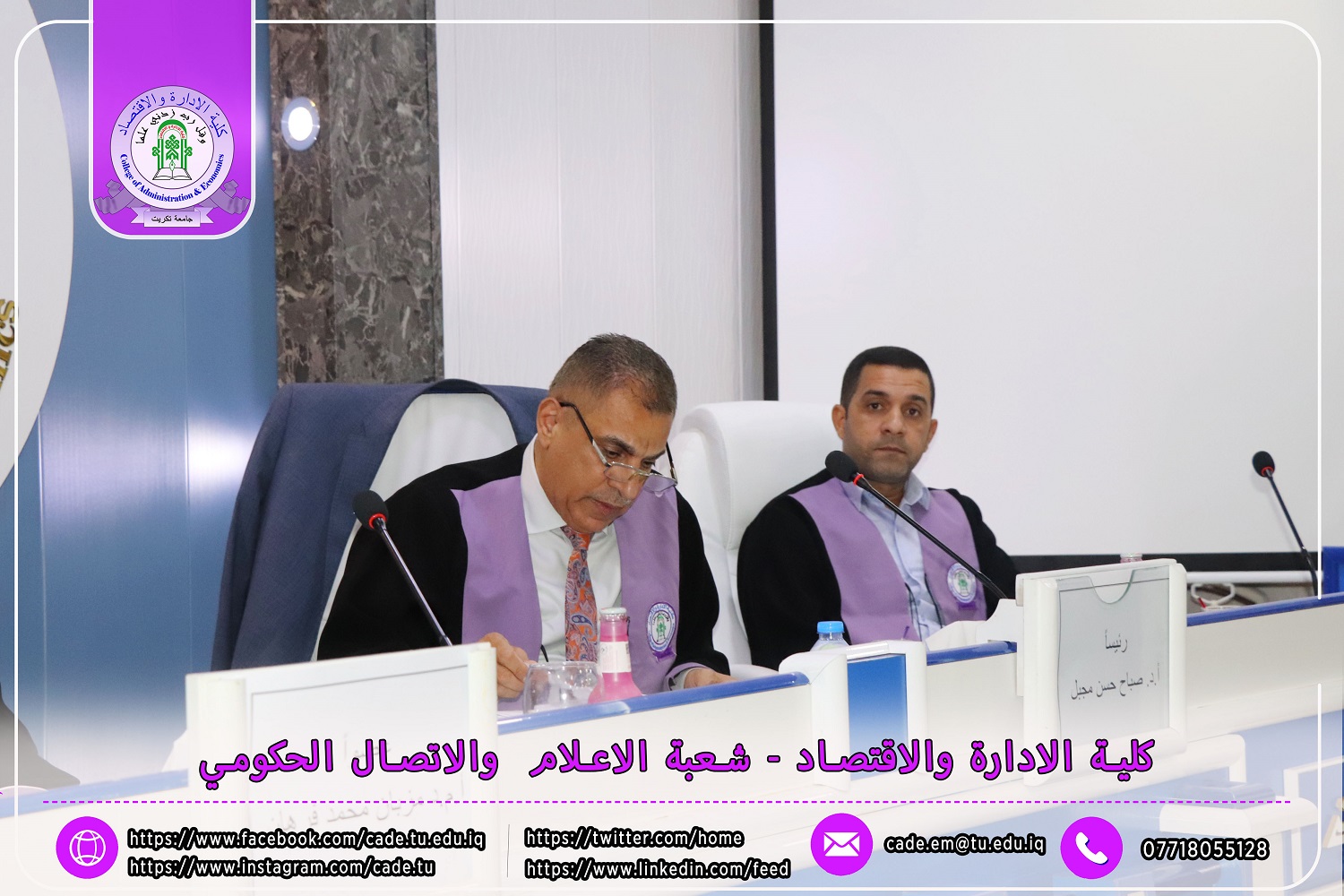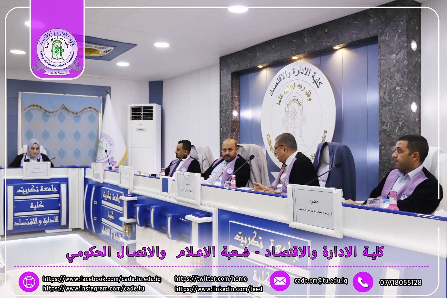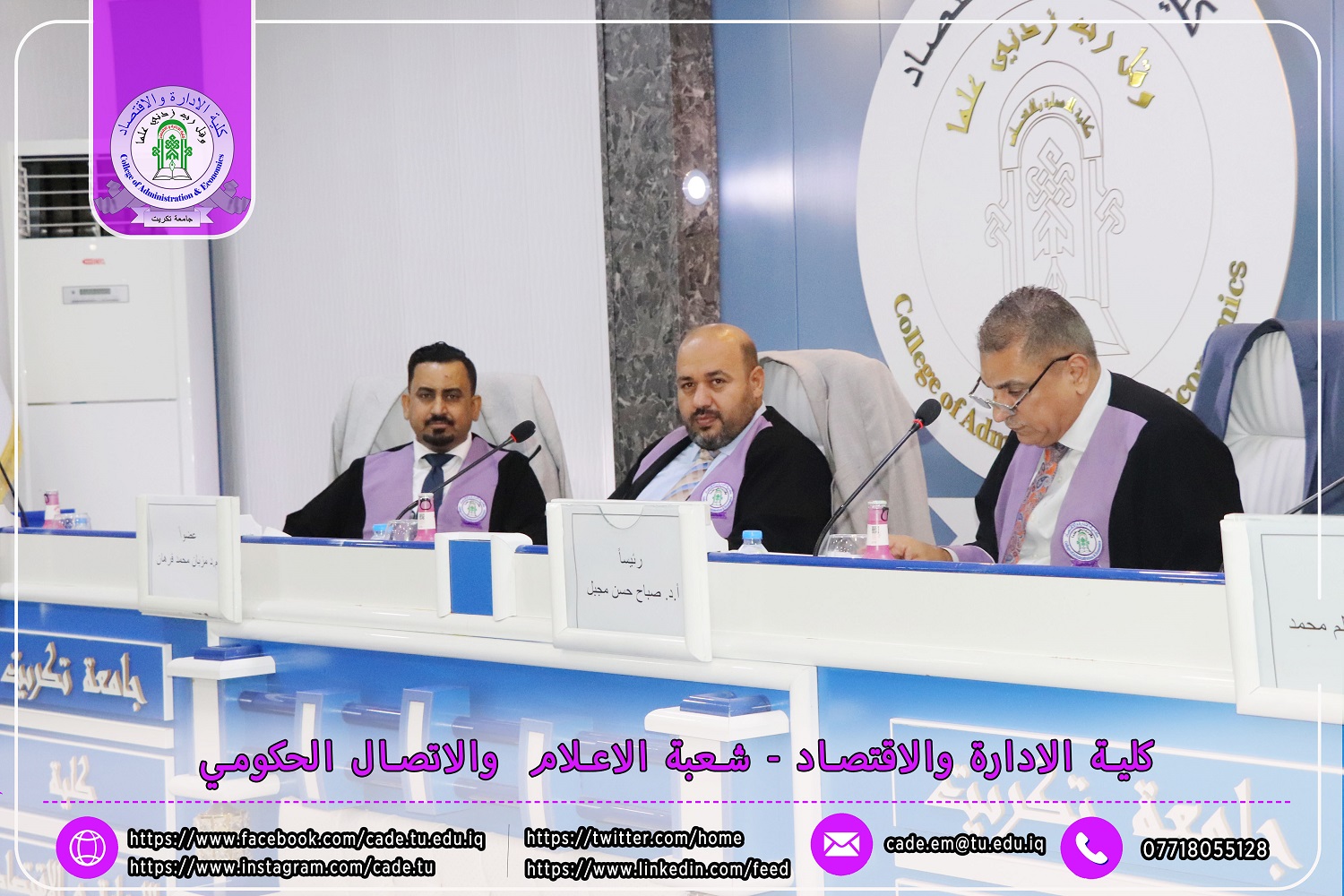 نوقشت في كلية الإدارة والاقتصاد / قسم المحاسبة / رسالة الماجستير في العلوم المحاسبية للطالــبة سرى جاسم خلف الموسومة ( تأثير لجان التدقيق في كفاءة التدقيق الداخلي وانعكاسه في مستوى الإفصاح عن معلومات تقارير الاستدامة / دراسة تطبيقية في عينة من المصارف المدرجة في سوق العراق للأوراق المالية ) بأشراف ا.د. وسام نعمة حسين.