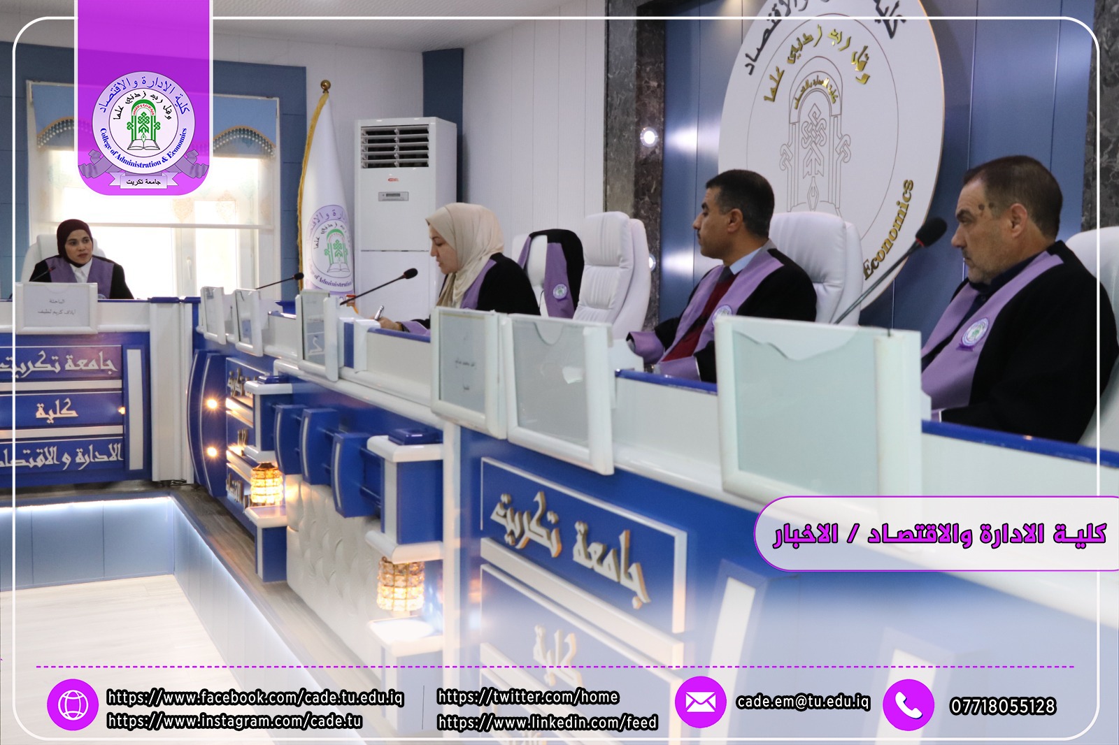 نوقشت في كلية الإدارة والاقتصاد / قسم إدارة الاعمال/ رسالة الماجستير في العلوم الادارية للطالــبة ايلاف كريم لطيف الموسومة (دور متطلبات المستشفيات الخضراء في تنفيذ الإدارة الامنة للنفايات: دراسة حالة في مستشفى تكريت التعليمي) بأشراف ا.د. قاسم احمد حنظل.