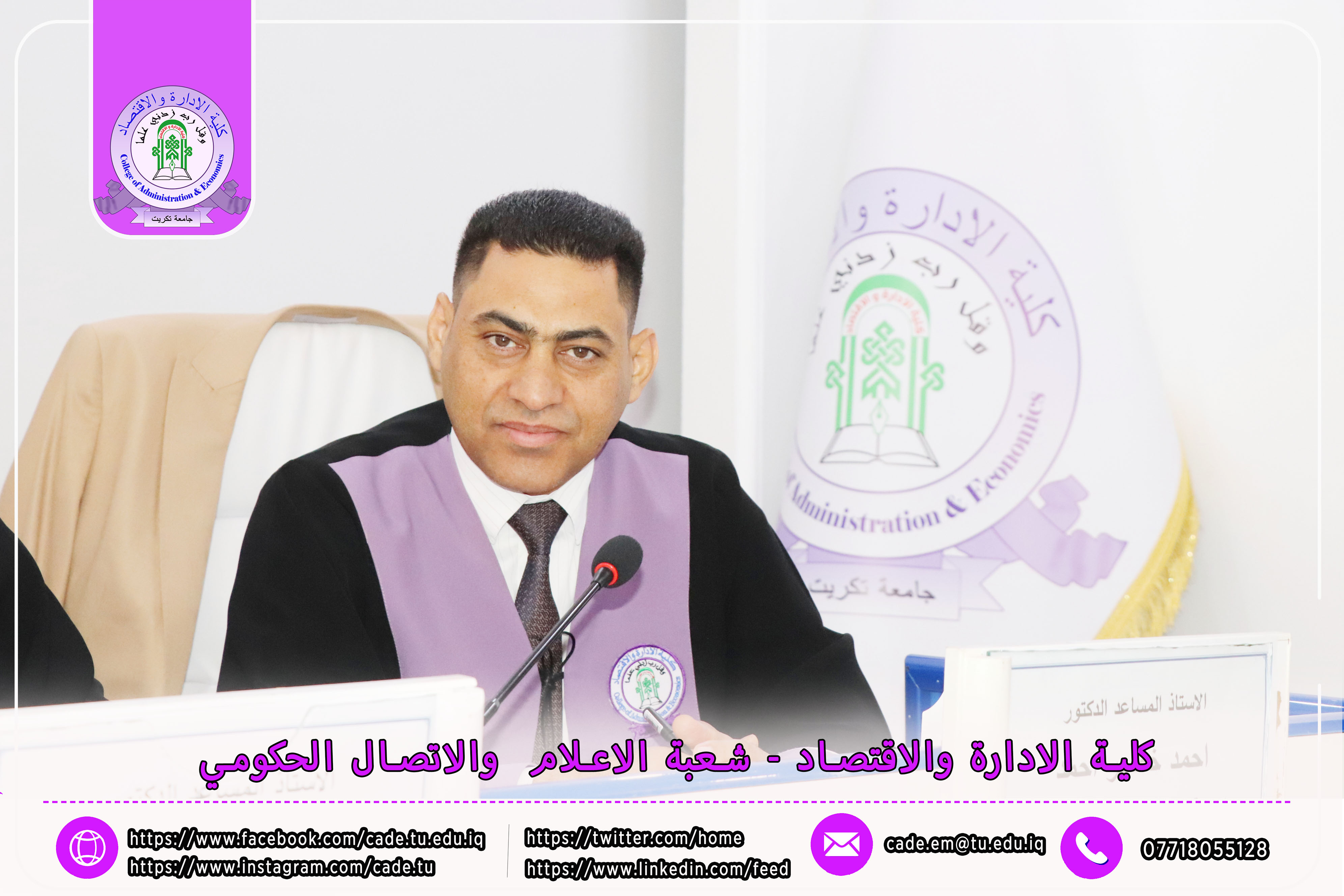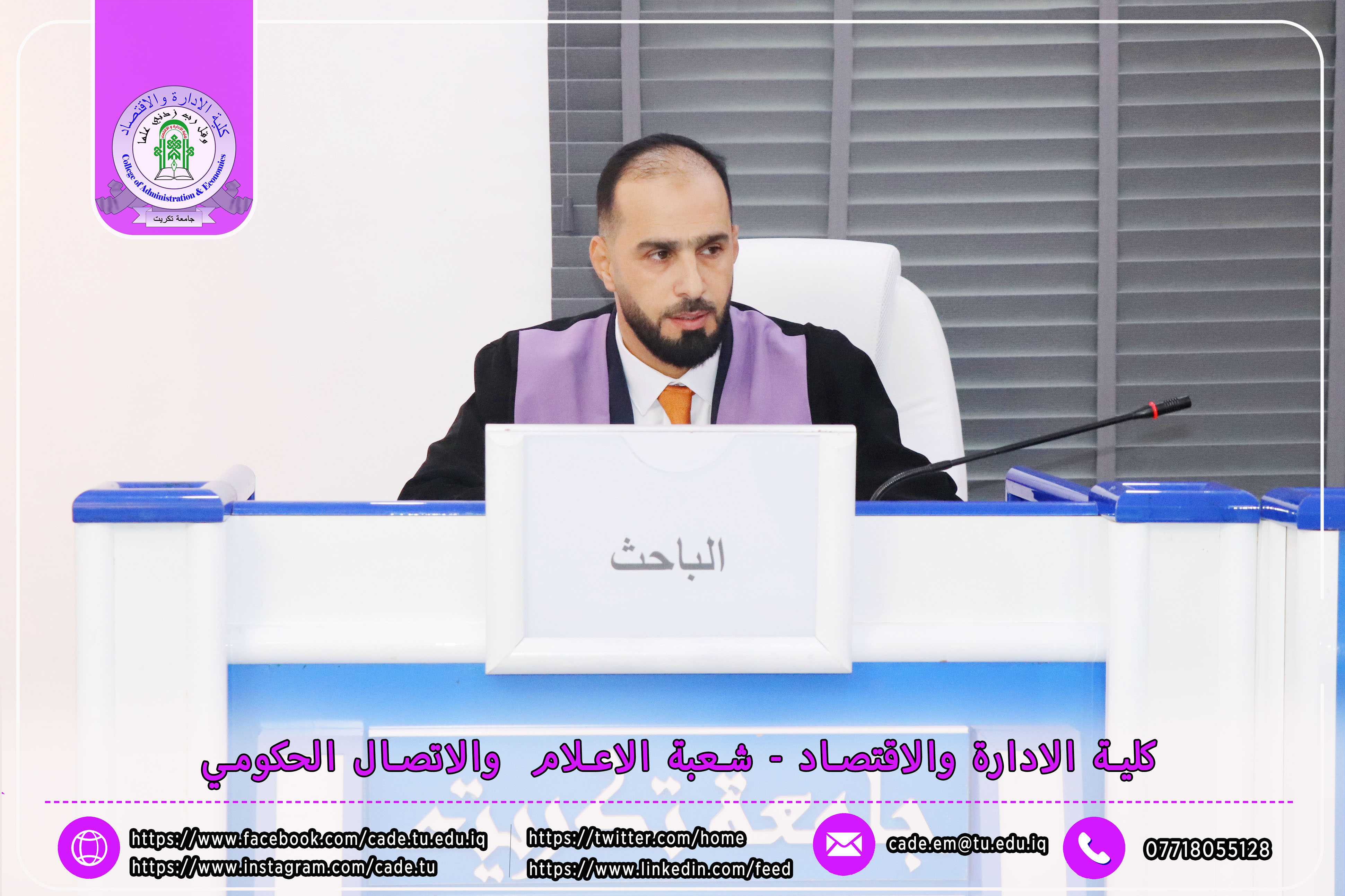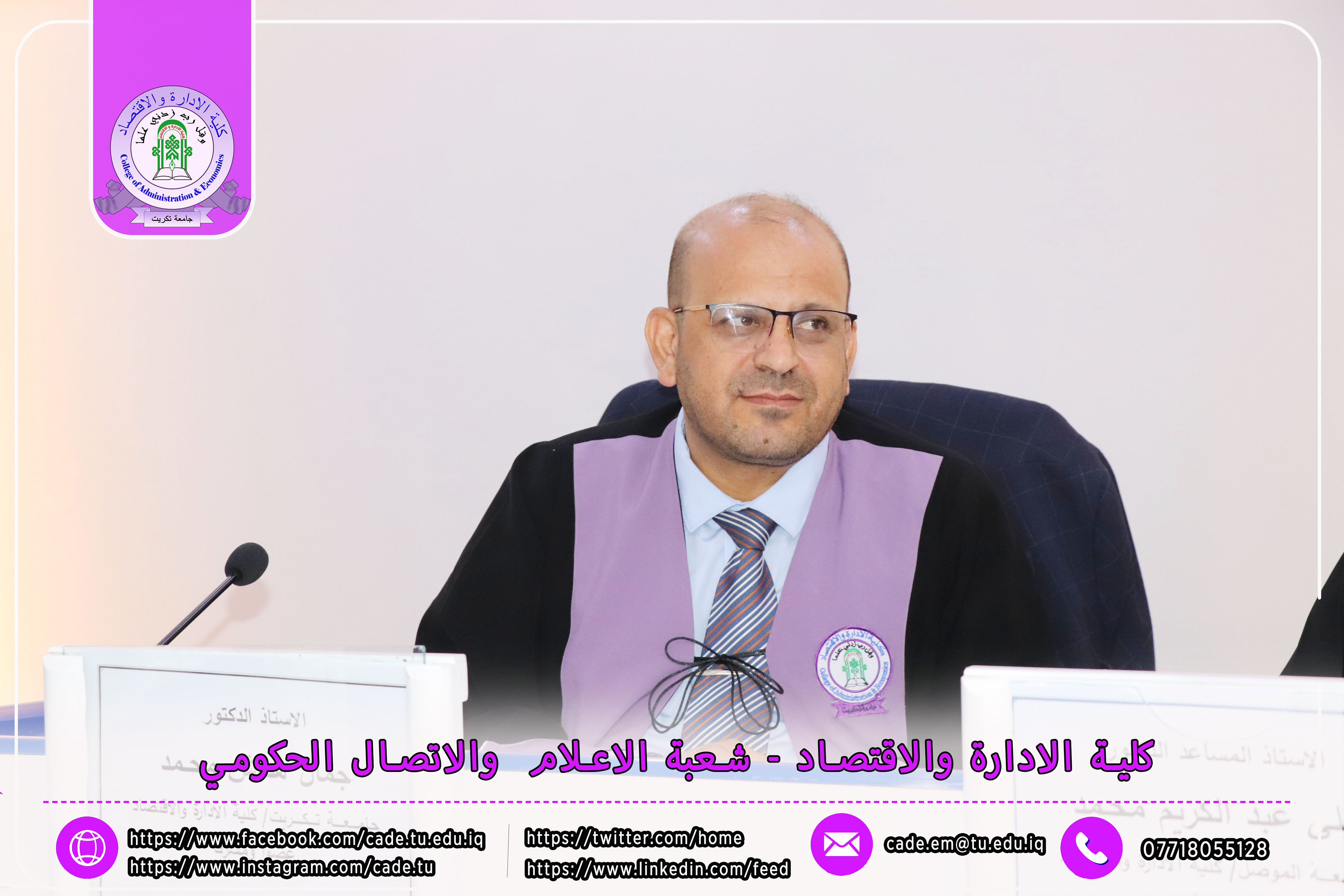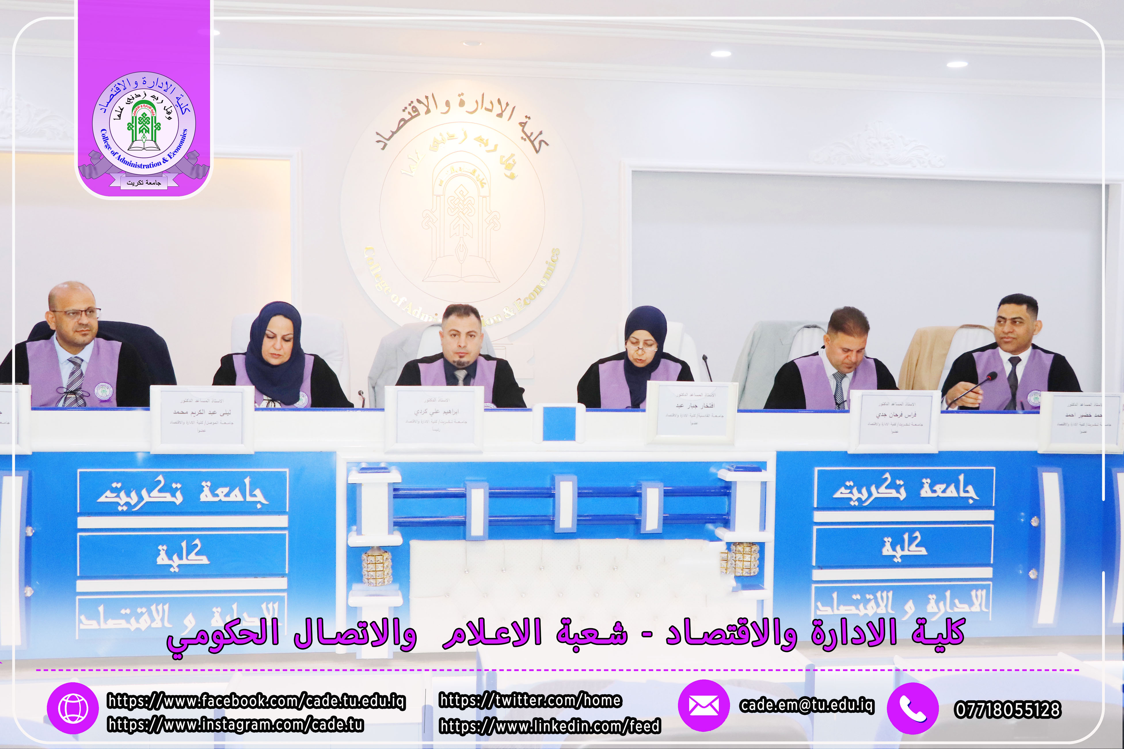 هذا وقد حضر المناقشة عميد كلية الادارة والاقتصاد أ.م.د. فؤاد فرحان حسين، ومعاون العميد للشؤون العلمية وا.م.د. خطاب عمران صالح، ومدير قسم الدراسات والتخطيط في جامعة تكريت ا.د. صالح حسن عبدالله وعدد من السادة التدريسيين وطلبة الدراسات العليا.