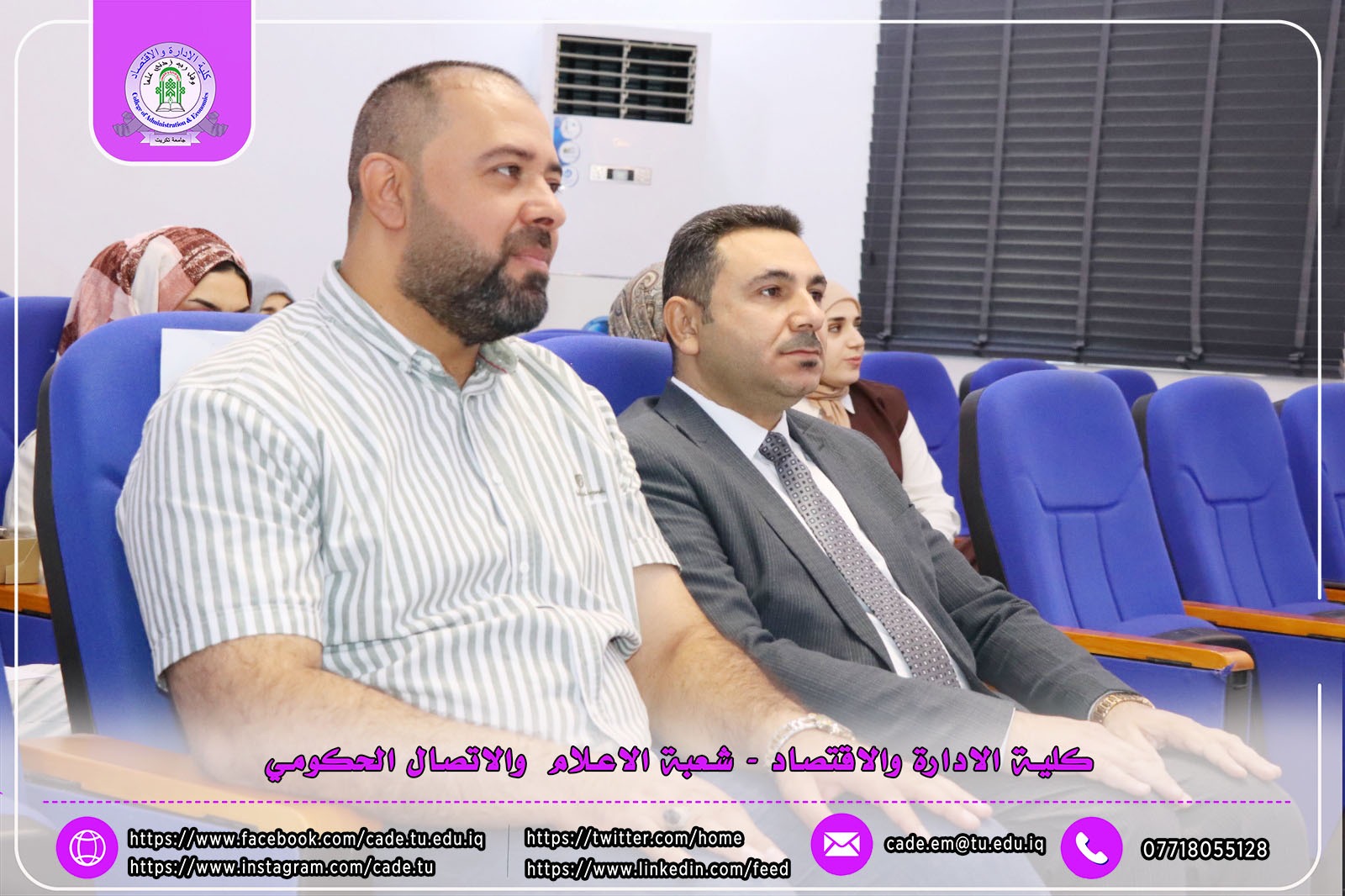 هذا وقد حضر المناقشة ا.م.د. فؤاد فرحان حسين عميد كلية الإدارة والاقتصاد و ا.م.د. خطاب عمران صالح معاون العميد للشؤون العلمية وم.د. احمد عايد مخلف معاون العميد للشؤون الإدارية وعدد من طلبة الدراسات العليا .