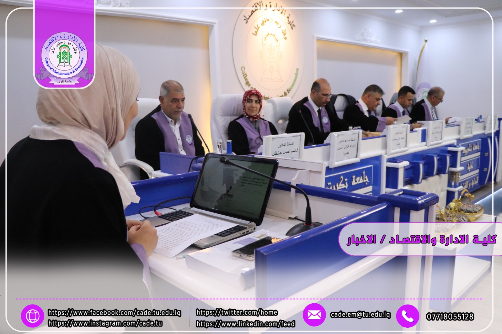 هذا وقد شهدت المناقشة حضور الأستاذ المساعد الدكتور فؤاد فرحان حسين، عميد كلية الإدارة والاقتصاد، والأستاذ المساعد الدكتور خطاب عمران صالح معاون العميد للشؤون العلمية والمدرس احمد عايد مخلف معاون العميد للشؤون الادارية، إلى جانب نخبة من السادة التدريسيين وعدد من طلبة الدراسات العليا.