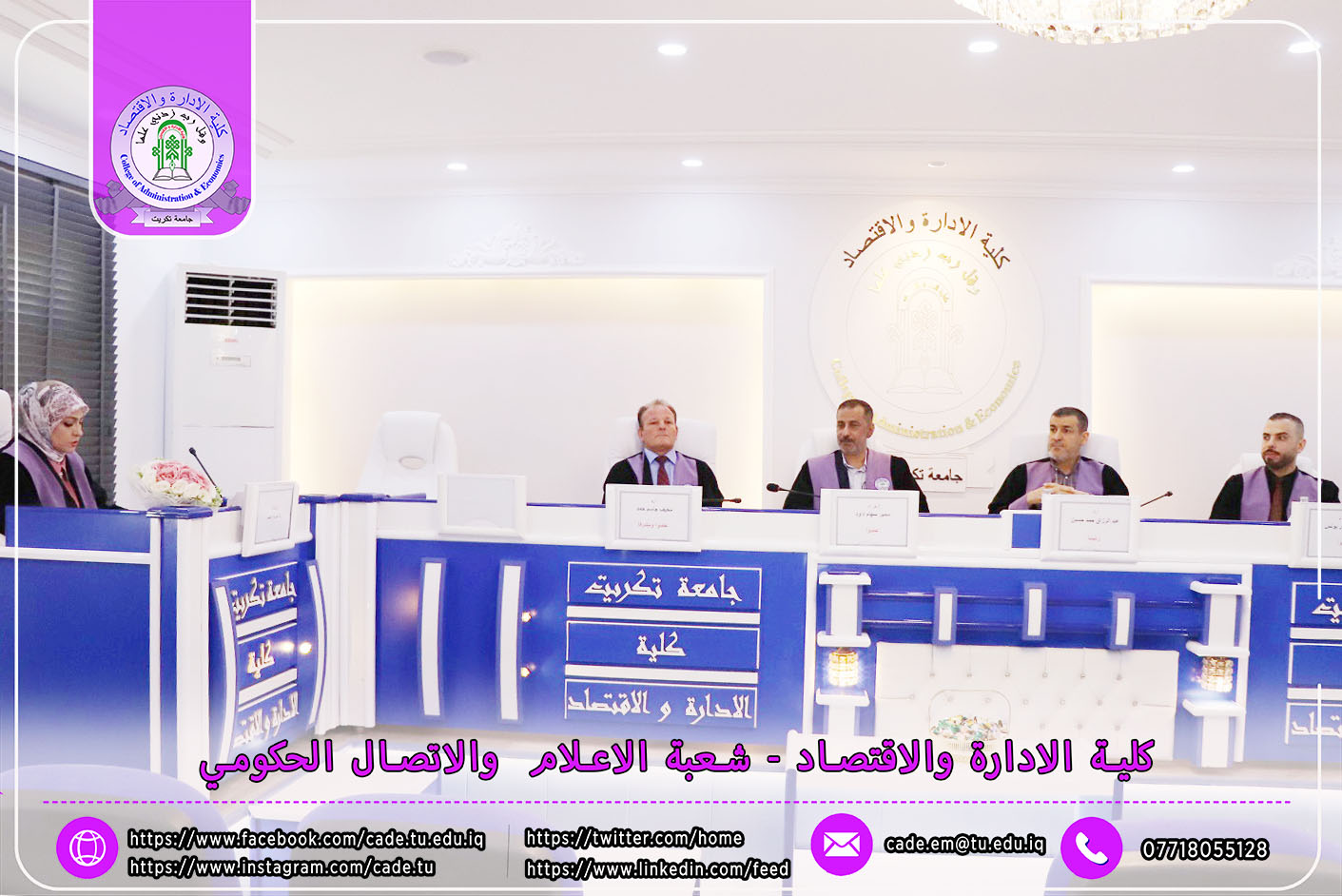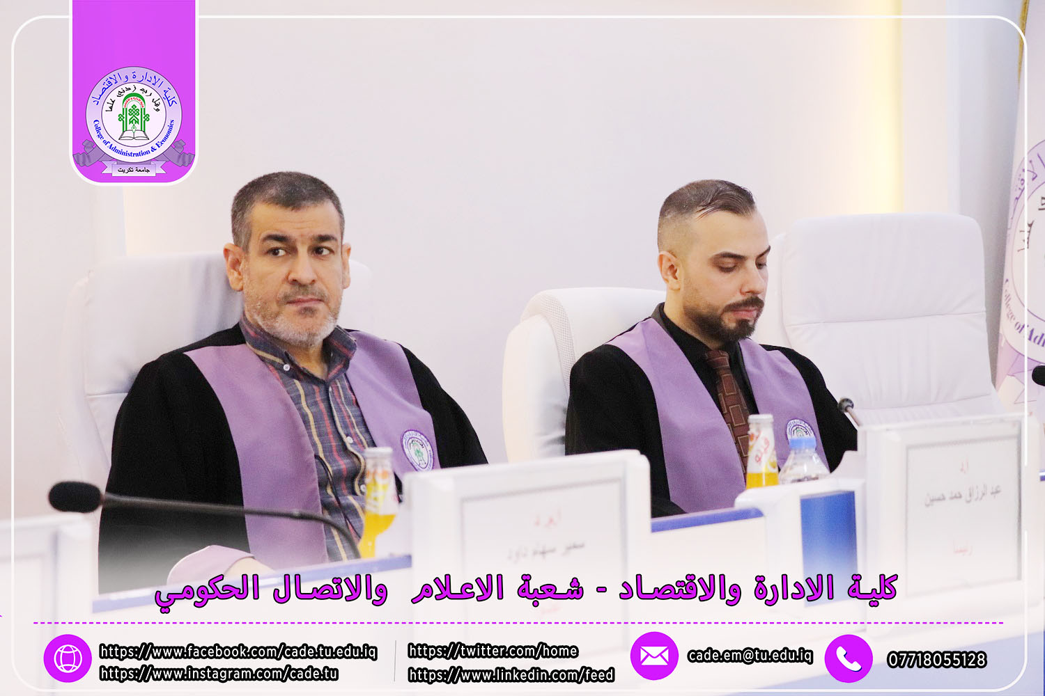 هذا وقد حضر المناقشة ا.م.د. فؤاد فرحان حسين عميد كلية الإدارة والاقتصاد و ا.م.د. فكري احمد لهمود الى جانب عدد من طلبة الدراسات العليا .