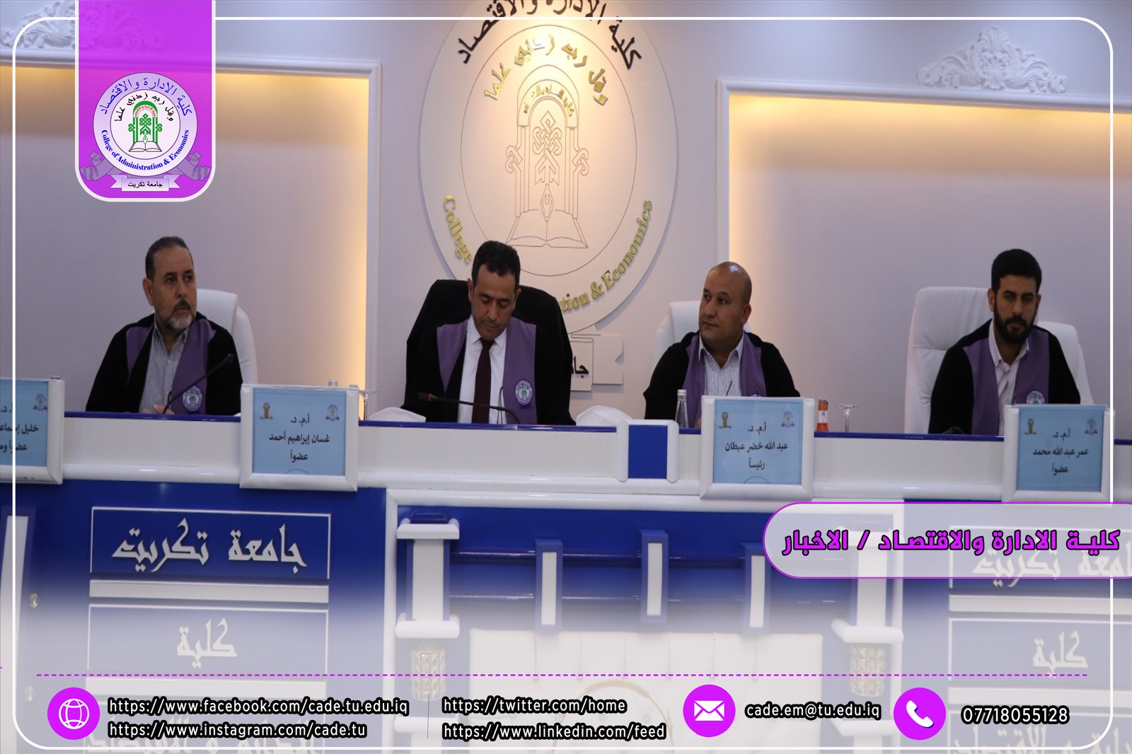 شهدت جلسة المناقشة حضور أ.م.د. فؤاد فرحان حسين، عميد كلية الإدارة والاقتصاد، وأ.م.د. خطاب عمران صالح معاون العميد للشؤون العلمية، إلى جانب عدد من أساتذة وطلبة الدراسات العليا.