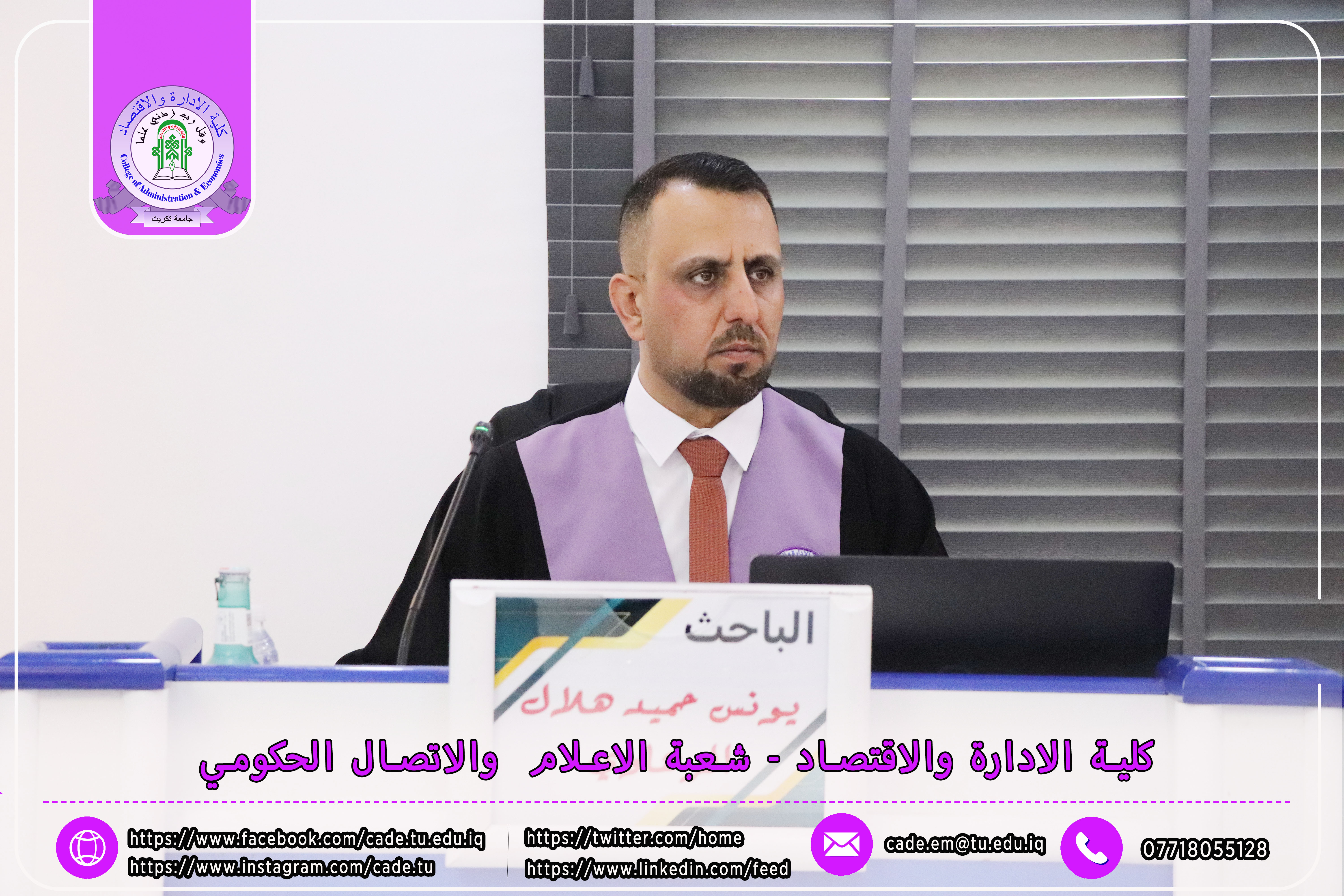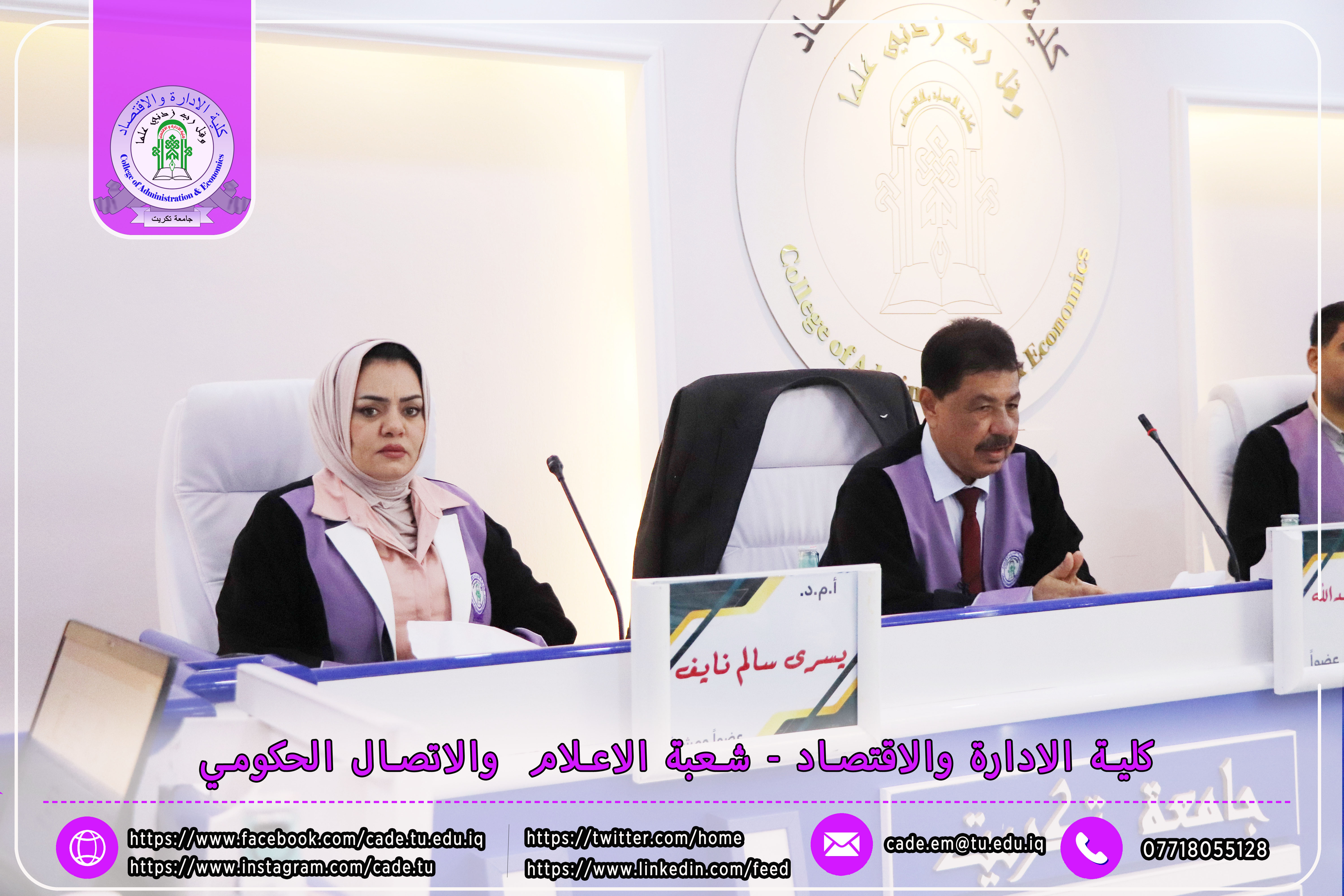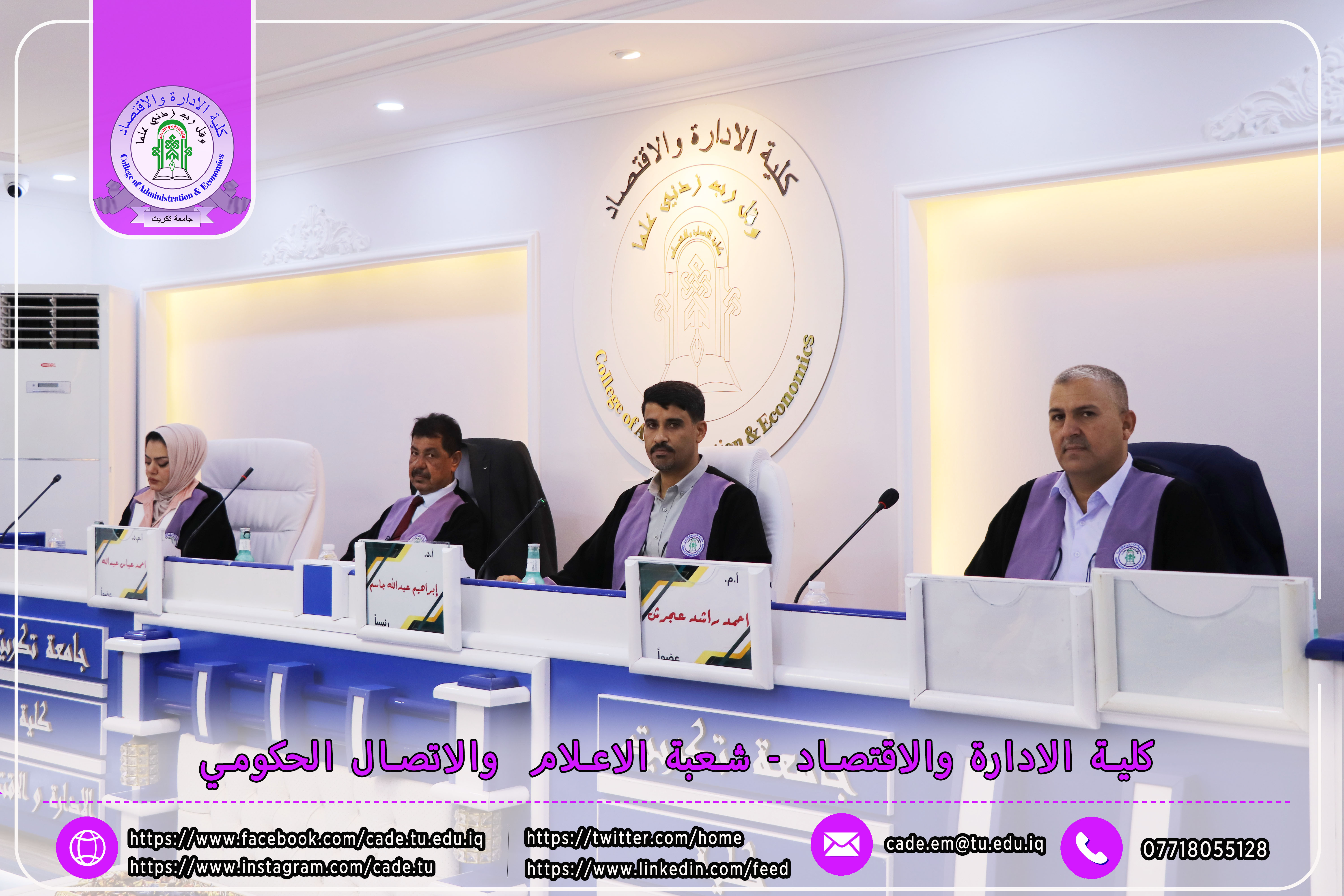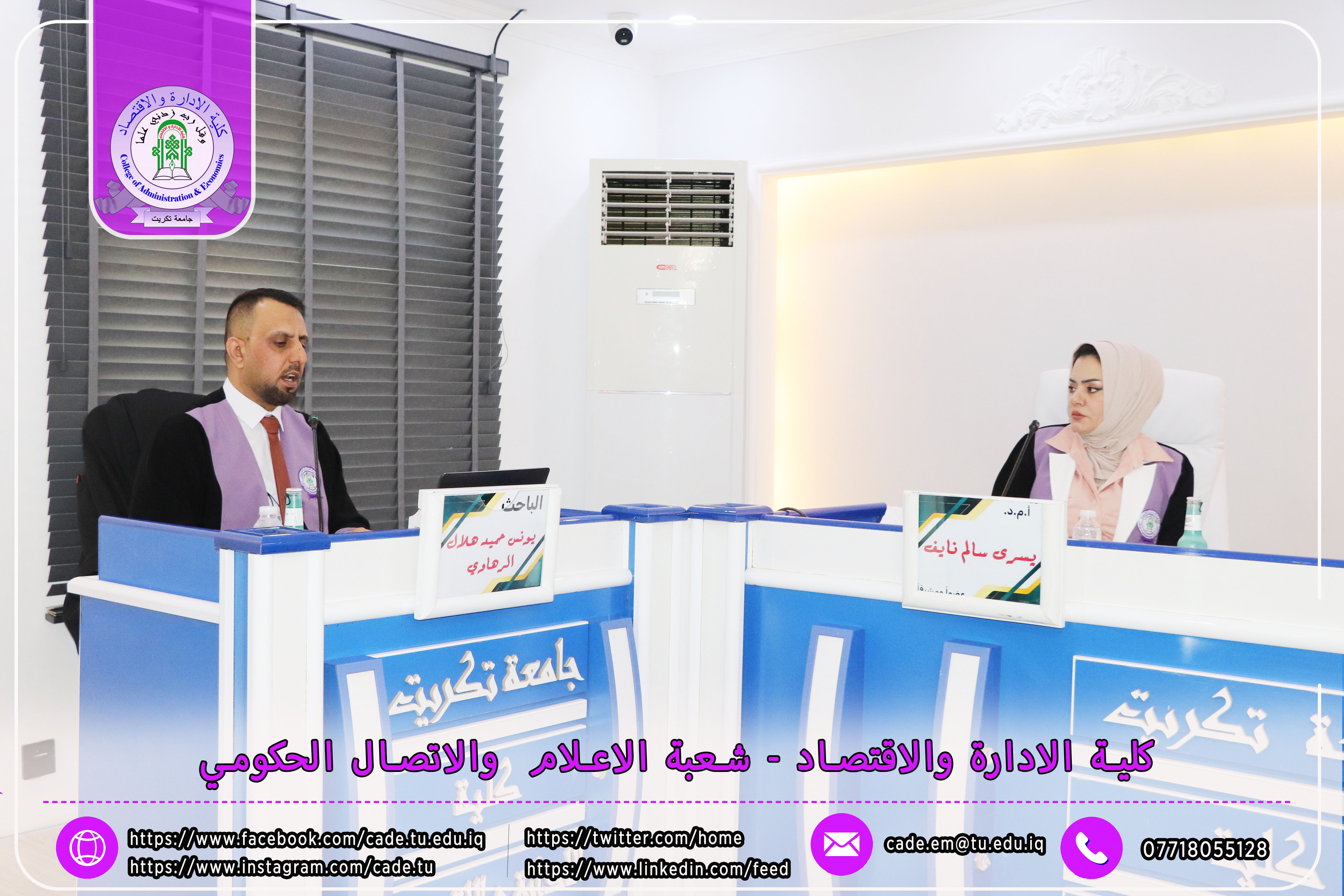 وقد شهدت المناقشة حضور الأستاذ المساعد الدكتور خطاب صالح عمران، معاون العميد للشؤون العلمية، إلى جانب عدد من طلبة الدراسات العليا.