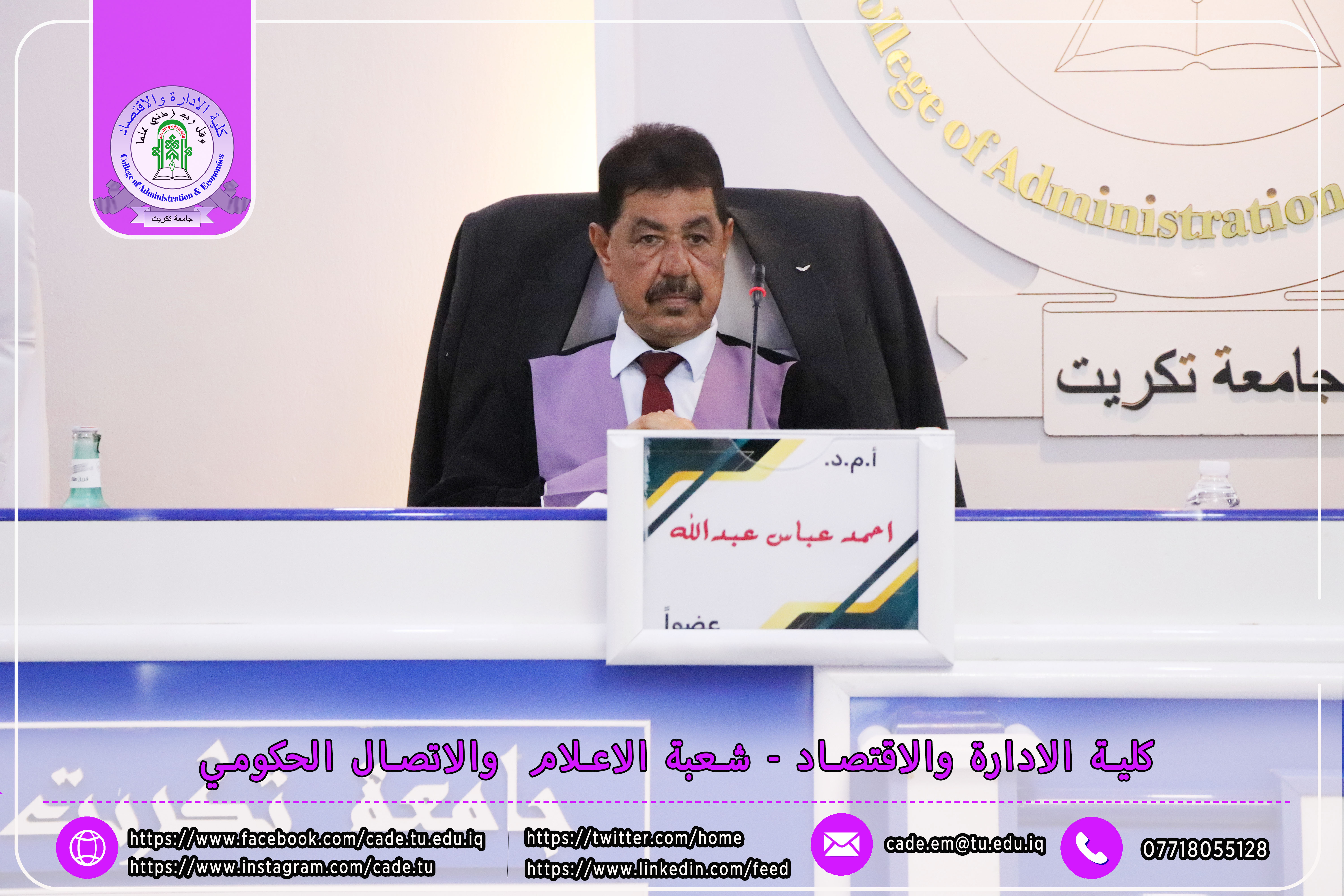 وتألفت لجنة المناقشة من ا.د. ابراهيم عبد الله جاسم رئيسًا، وعضوية كل من ا.م.د. احمد عباس عبد الله، ا.م. احمد راشـــــد عجرش، إلى جانب المشرف على الرسالة.