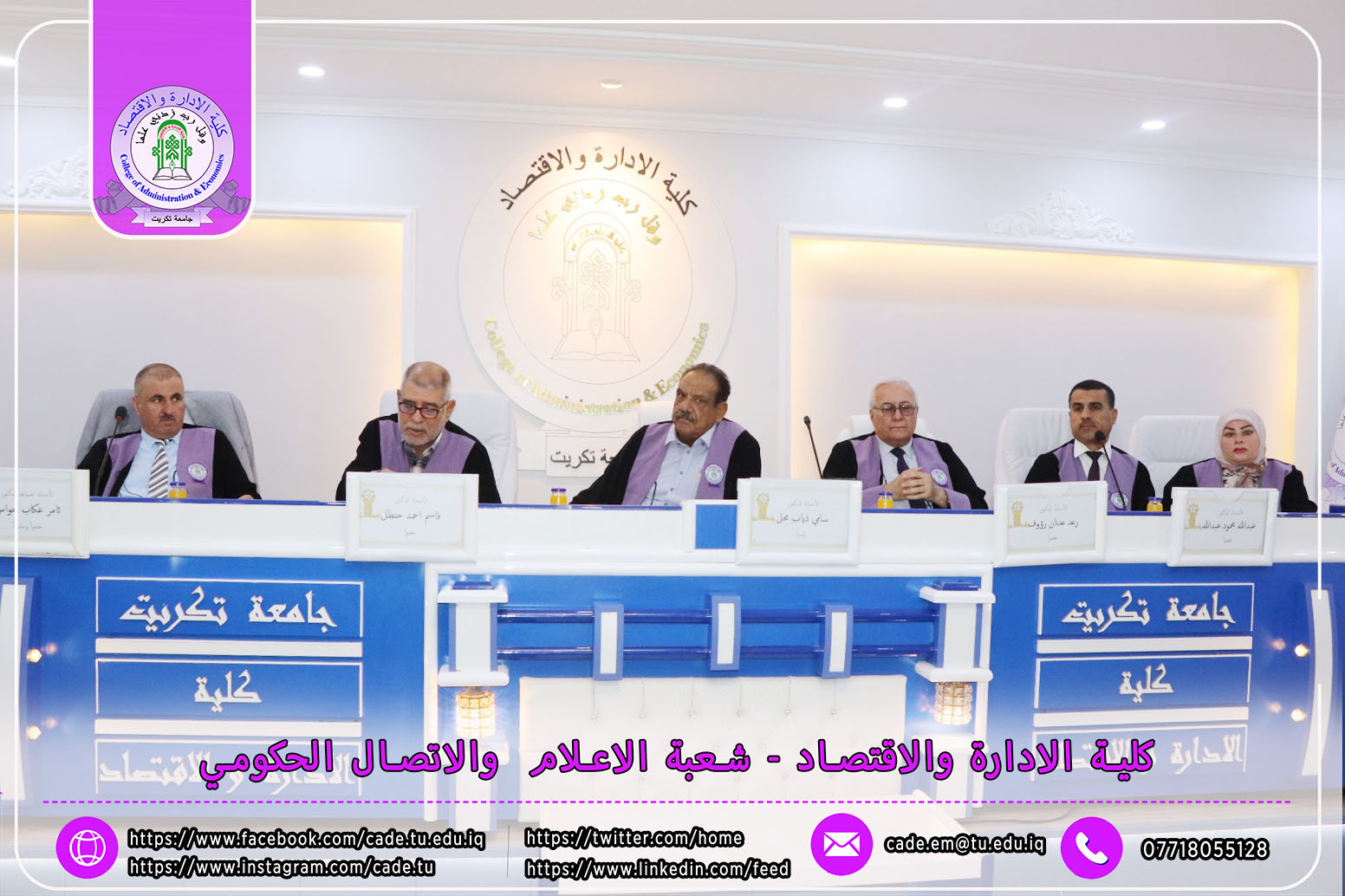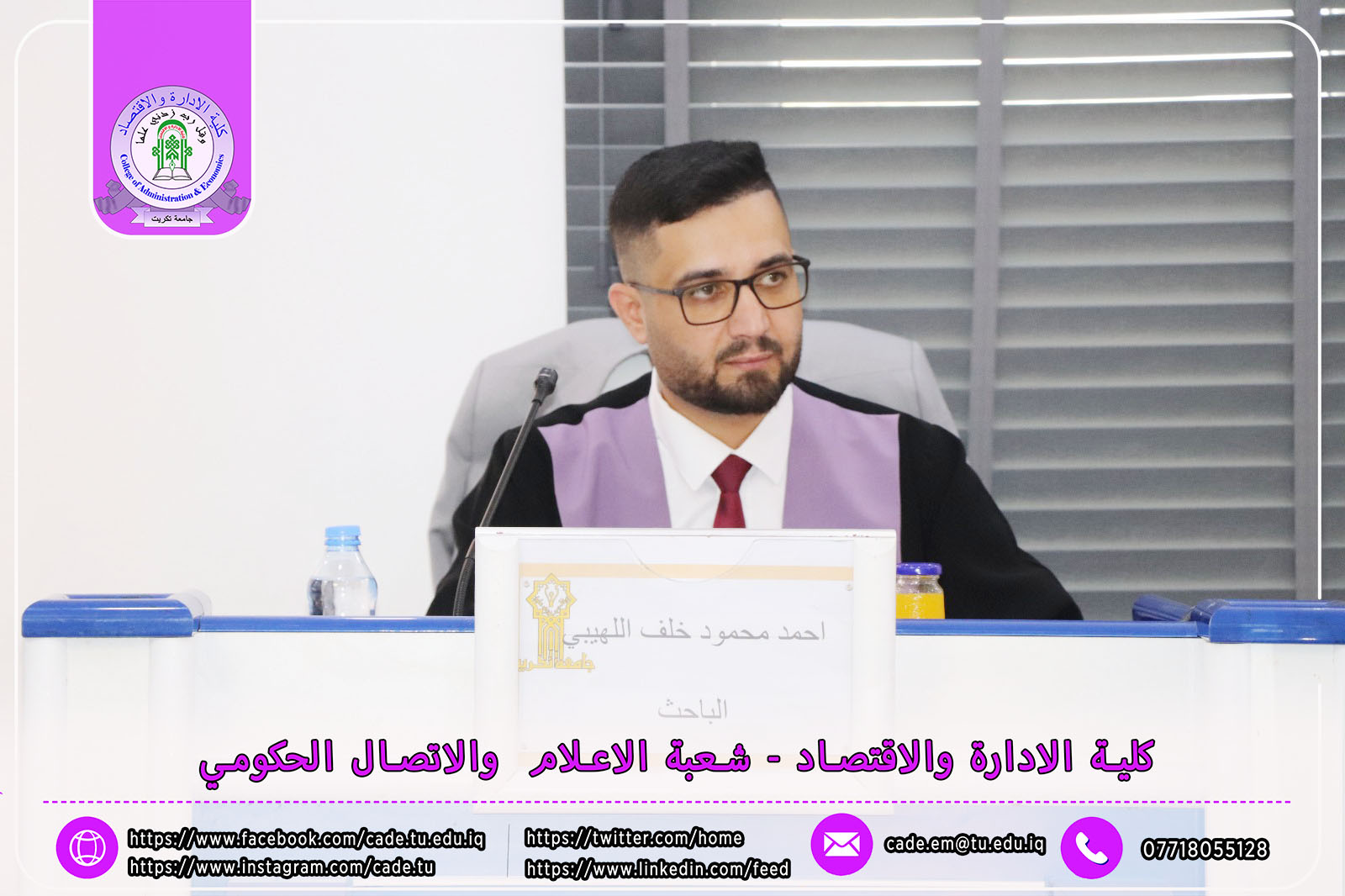هذا وقد حضر المناقشة ا.م.د. فؤاد فرحان حسين عميد كلية الإدارة والاقتصاد و ا.م.د. خطاب صالح عمران معاون العميد للشؤون العلمية إلى جانب نخبة من السادة التدريسيين وعدد من طلبة الدراسات العليا.