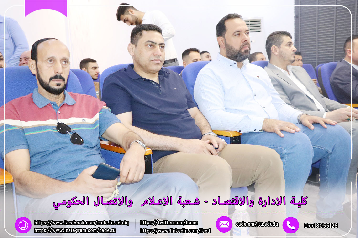 هذا وقد حضر المناقشة ا.م.د. خطاب صالح عمران معاون العميد للشؤون العلمية، ا.م.د. قتيبة إبراهيم حمادة معاون العميد لشؤون الطلبة، م.د. احمد عايد مخلف معاون العميد للشؤون الإدارية والمالية إلى جانب نخبة من السادة التدريسيين وعدد من طلبة الدراسات العليا.