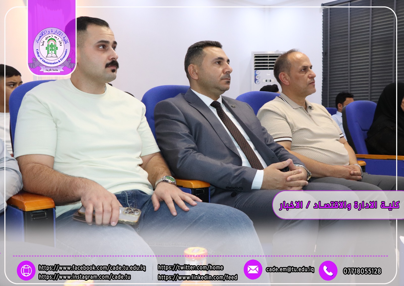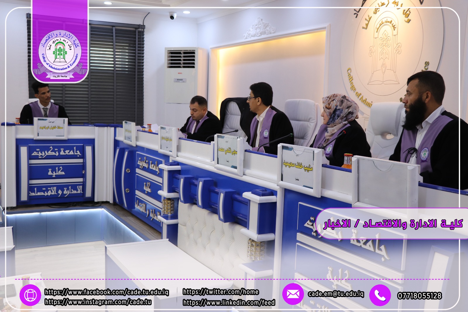 نوقشت في كلية الإدارة والاقتصاد / قسم العلوم المالية والمصرفية / رسالة الماجستير في العلوم المالية والمصرفية للطالب معاذ خليل ابراهيم الموسومة (تأثير هيكل رأس المال في السيولة المصرفية_ دراسة تطبيقية لعدد من المصارف التجارية العراقية الخاصة المختارة) وذلك بأشراف ا.د. إبراهيم علي كردي.