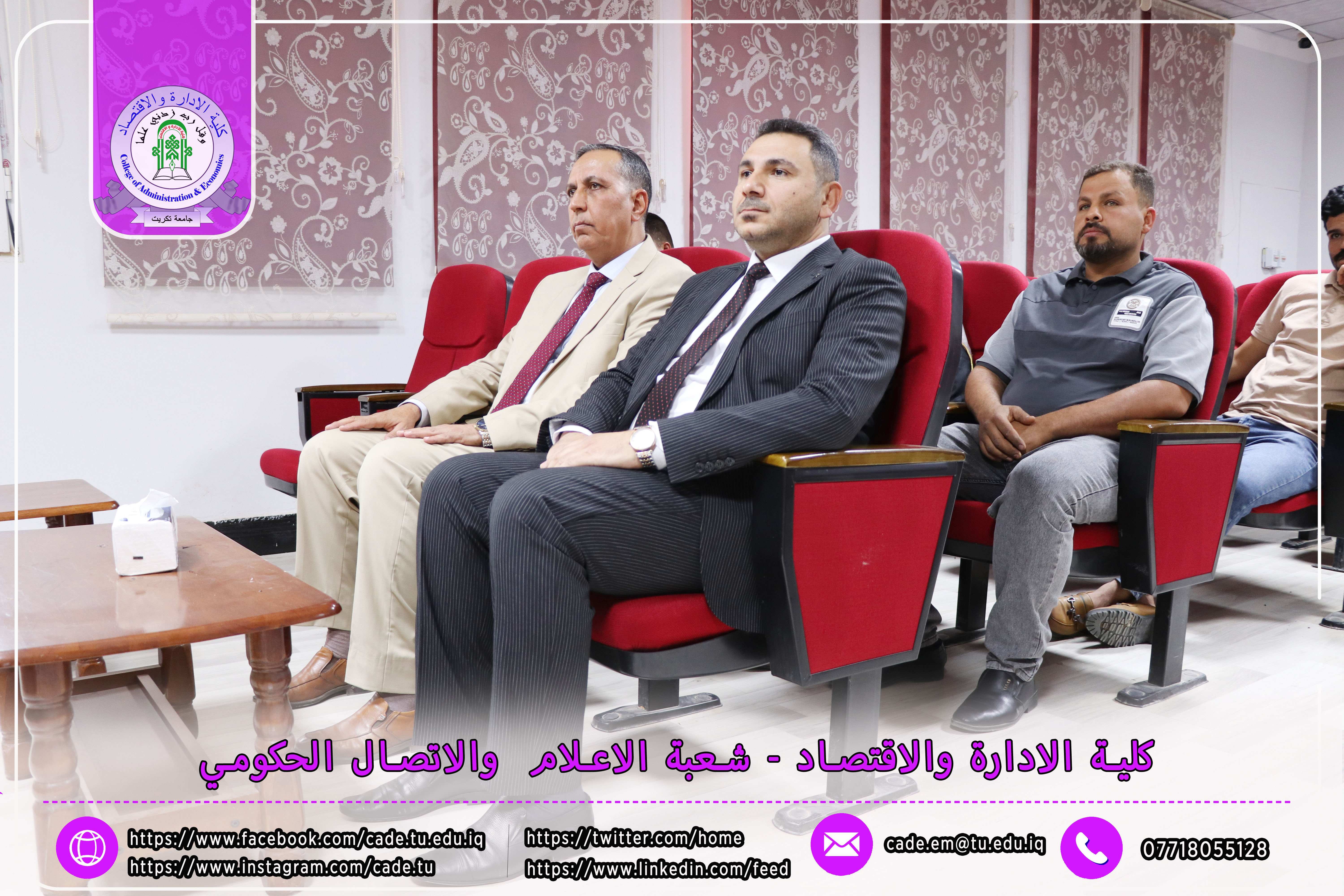 نوقشت في كلية الإدارة والاقتصاد / قسم المحاسبة / رسالة الماجستير في العلوم المحاسبية للطالب علي شيخ حسين الموسومة (تأثير الامن الوظيفي في تمهيد الدخل وانعكاسه على قيمة الشركة: دراسة تطبيقية على عينة من الشركات المدرجة في سوق العراق للأوراق المالية) وذلك بأشراف ا.د. سطم صالح حسين.
