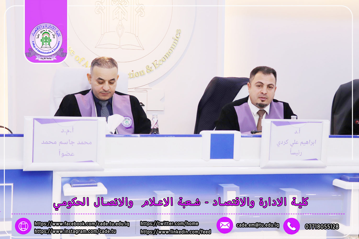 وقد حضر المناقشة حضور الأستاذ المساعد الدكتور فؤاد فرحان حسين عميد كلية الإدارة والاقتصاد، والأستاذ المساعد الدكتور خطاب عمران صالح معاون العميد للشؤون العلمية، إلى جانب عدد من طلبة الدراسات العليا.