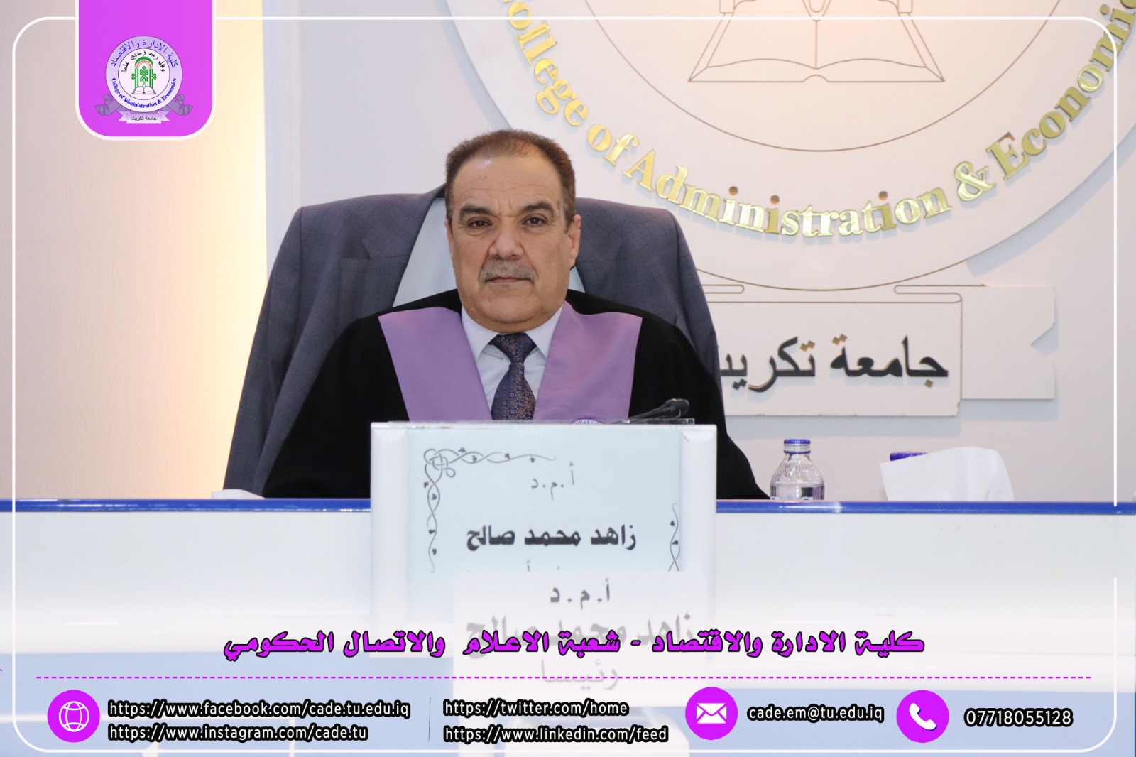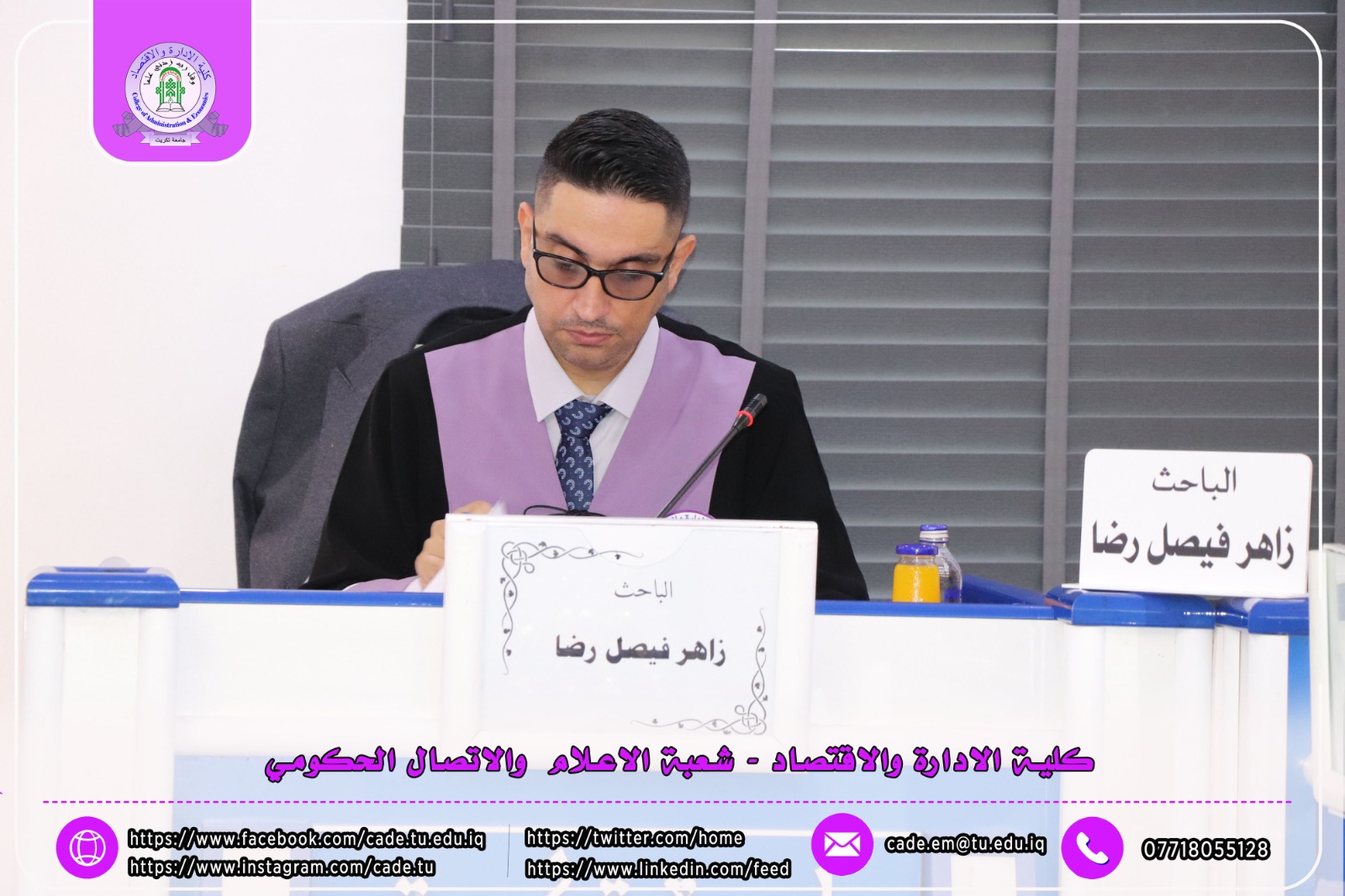 نوقشت في كلية الإدارة والاقتصاد رسالة الدبلوم العالي في التخطيط الاستراتيجي للطالــب زاهر فيصل رضا الموسومة (دور النضج الرقمي في تحسين جودة الخدمات الصحية: دراسة تحليلية في دائرة صحة كركوك) بأشراف ا.م.د. علي احسان عبدالكريم.
