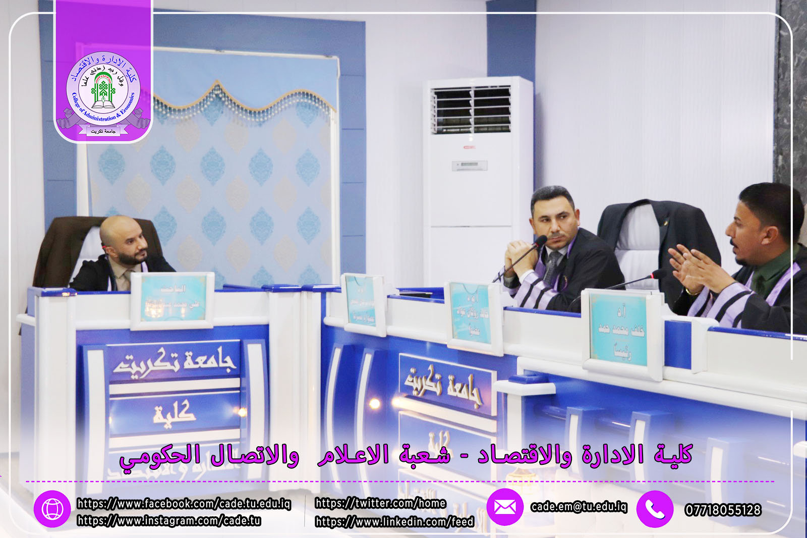 هذا وقد حضر المناقشة السيد العميد ا.د. عبد الزراق حمد حسين والسيد رئيس قسم الاقتصاد ا.م.د. إبراهيم عبدالله جاسم وعدد من طلبة الدراسات العليا.