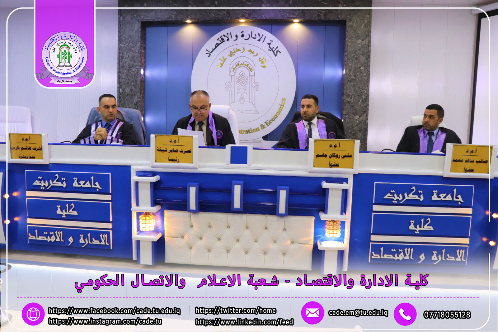 نوقشت في كلية الإدارة والاقتصاد / قسم المحاسبة / رسالة الماجستير في العلوم المحاسبية للطالــبة (رونق حاتم شهاب) الموسومة ( تأثير المحاسبة عن رأس المال الفكري في قيمة الشركة في ظل تعددية أنماط الملكية: دراسة تطبيقية في عينة من الشركات المدرجة في سوق العراق للأوراق المالية ) بأشراف ا.م. عماد صالح نعمة.