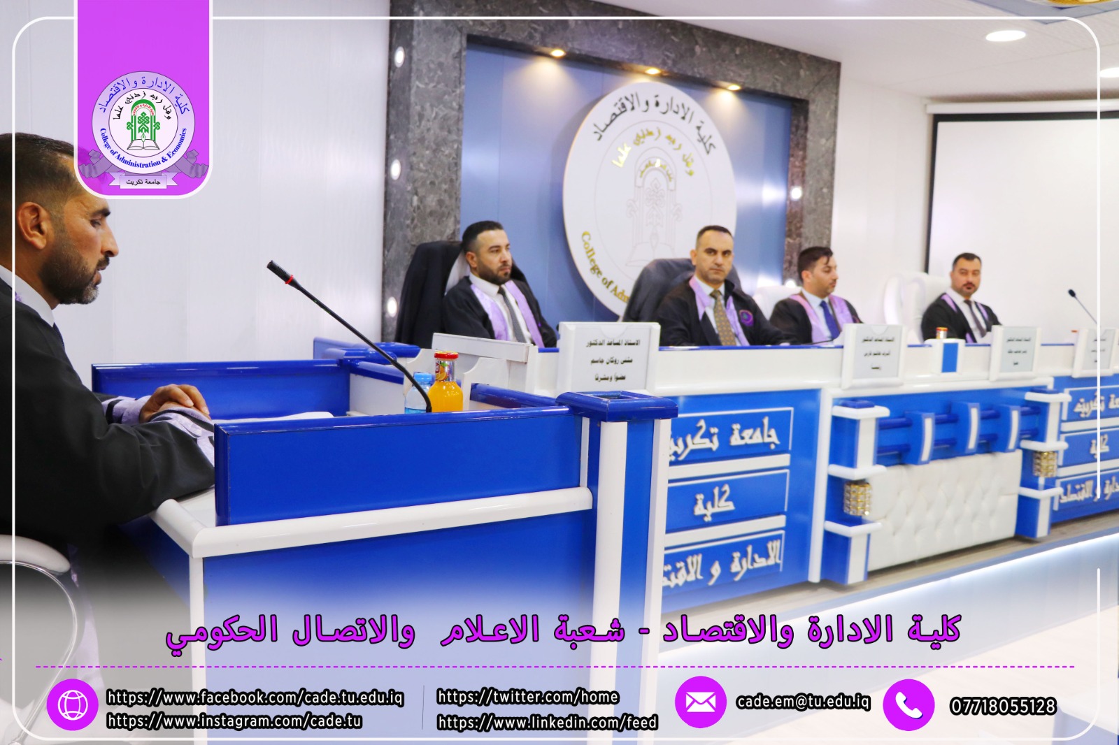 هذا وقد حضر المناقشة السيد العميد ا.د. عبد الرزاق حمد حسين، بالإضافة إلى عدد من السادة التدريسيين وطلبة الدراسات العليا.