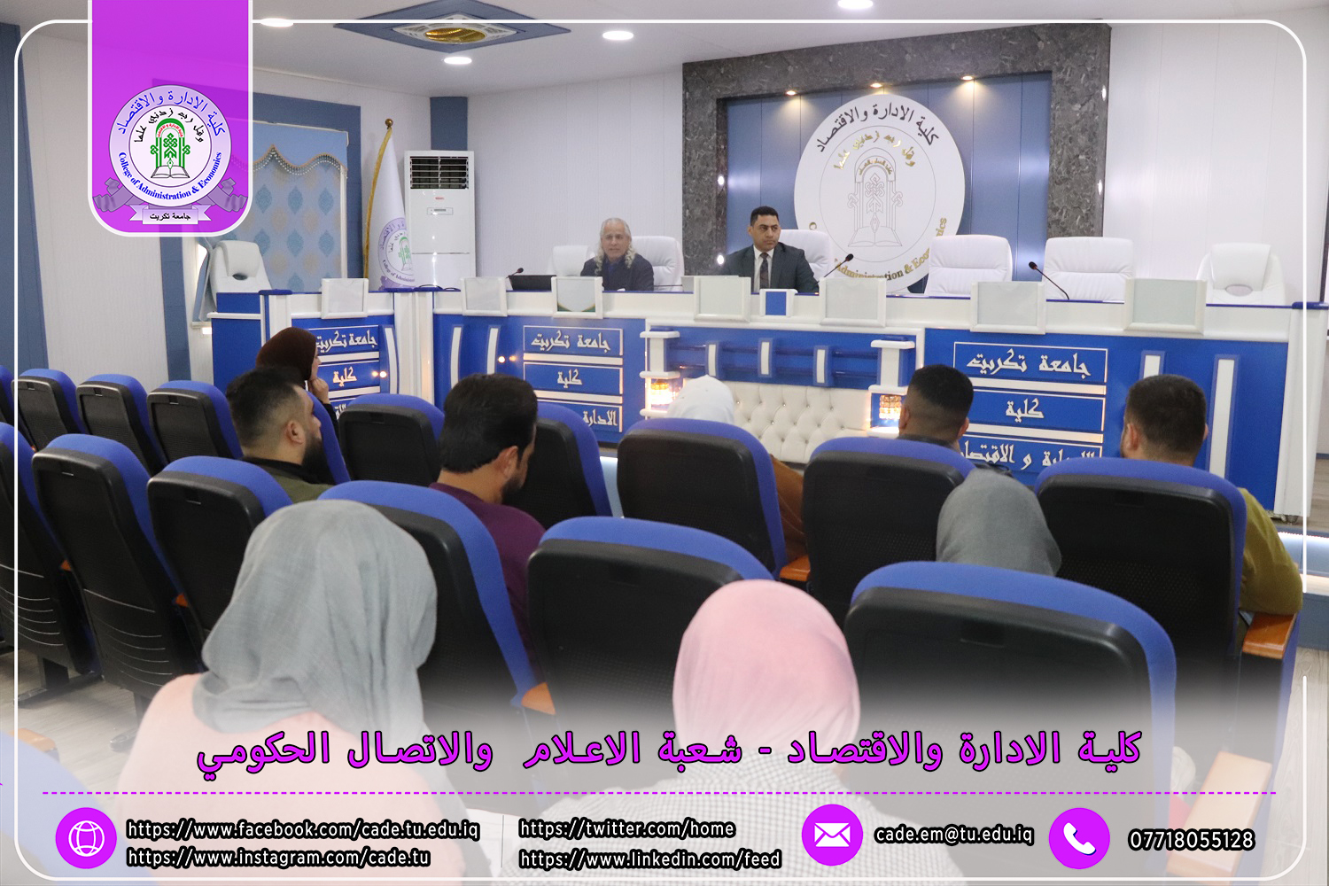 برعاية الأستاذ الدكتور وعد محمود رؤوف، رئيس جامعة تكريت، وبإشراف الأستاذ الدكتور عبد الرزاق حمد حسين، عميد كلية الإدارة والاقتصاد، نظم قسم الإدارة العامة ندوة علمية حضورية بعنوان "استخدام الأدوات الإحصائية في ترصين البحوث العلمية واستخدام برنامج (لاتكس)"، وذلك يوم الاثنين الموافق 25 /11/ 2024، في قاعة الدكتور محمد بدع.