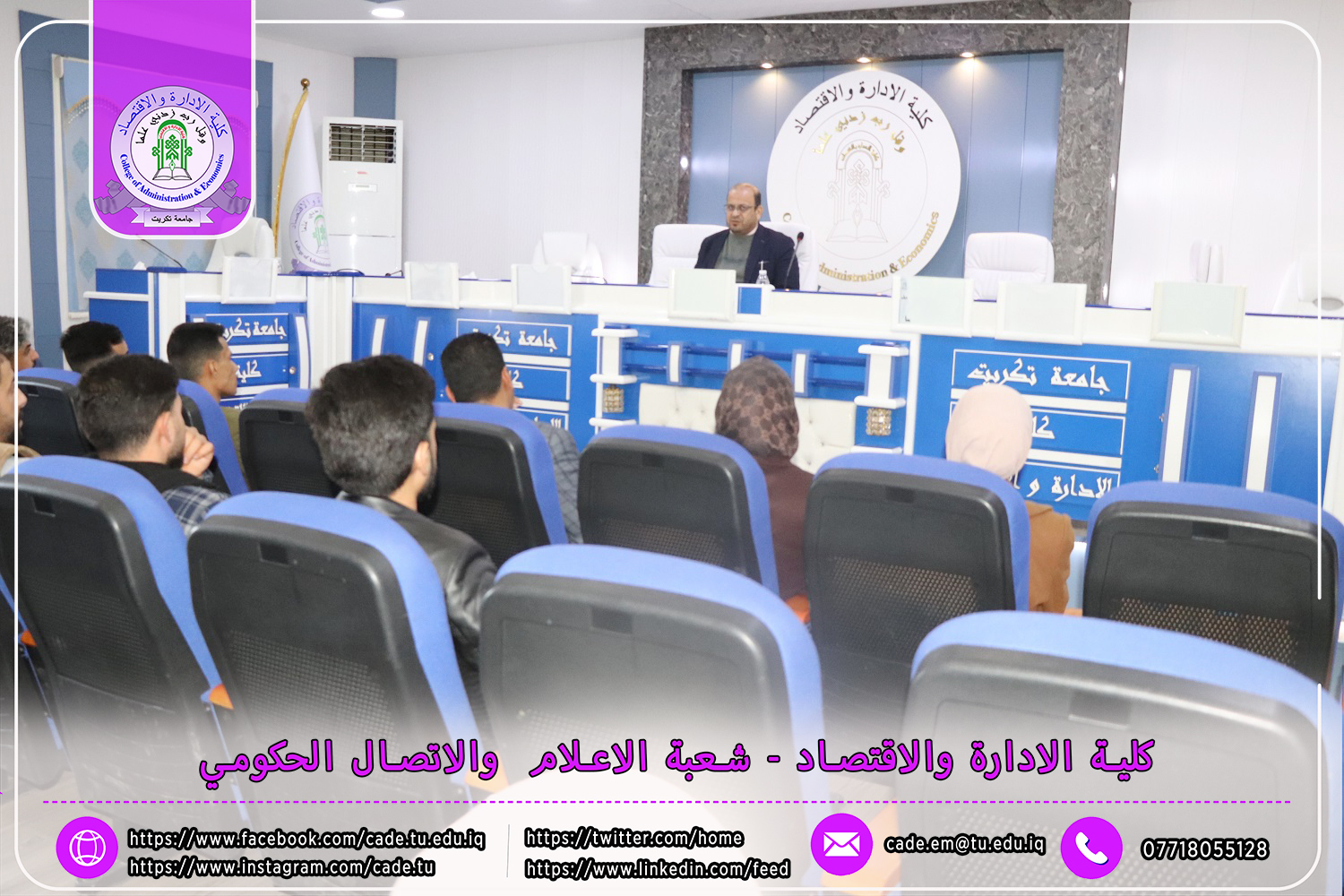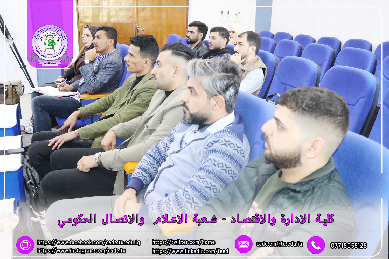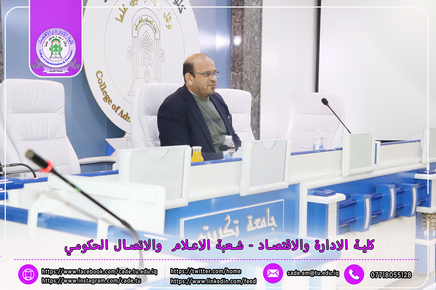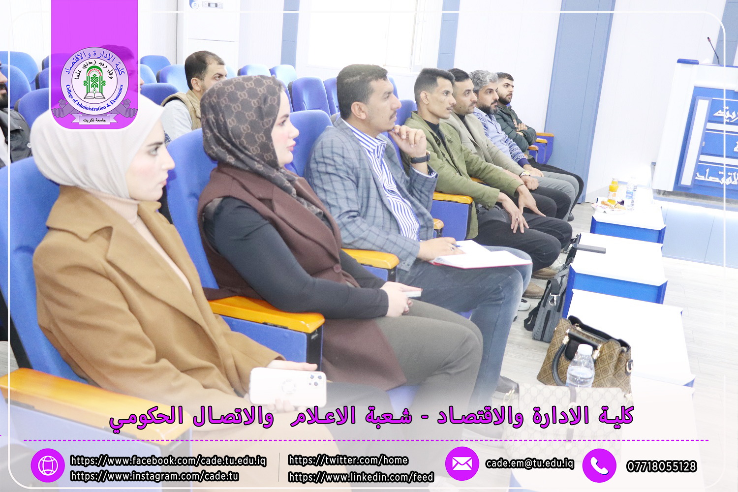 برعاية الأستاذ الدكتور وعد محمود رؤوف، رئيس جامعة تكريت، وبإشراف الأستاذ الدكتور عبد الرزاق حمد حسين، عميد كلية الإدارة والاقتصاد، نظم قسم العلوم المالية والمصرفية ورشة علمية حضورية بعنوان "كيفية تطوير أفكار بحثية وتحويلها إلى مشاريع بحثية ناجحة"، وذلك يوم الأربعاء الموافق 27 /11/ 2024، على قاعة الدكتور محمد بدع.