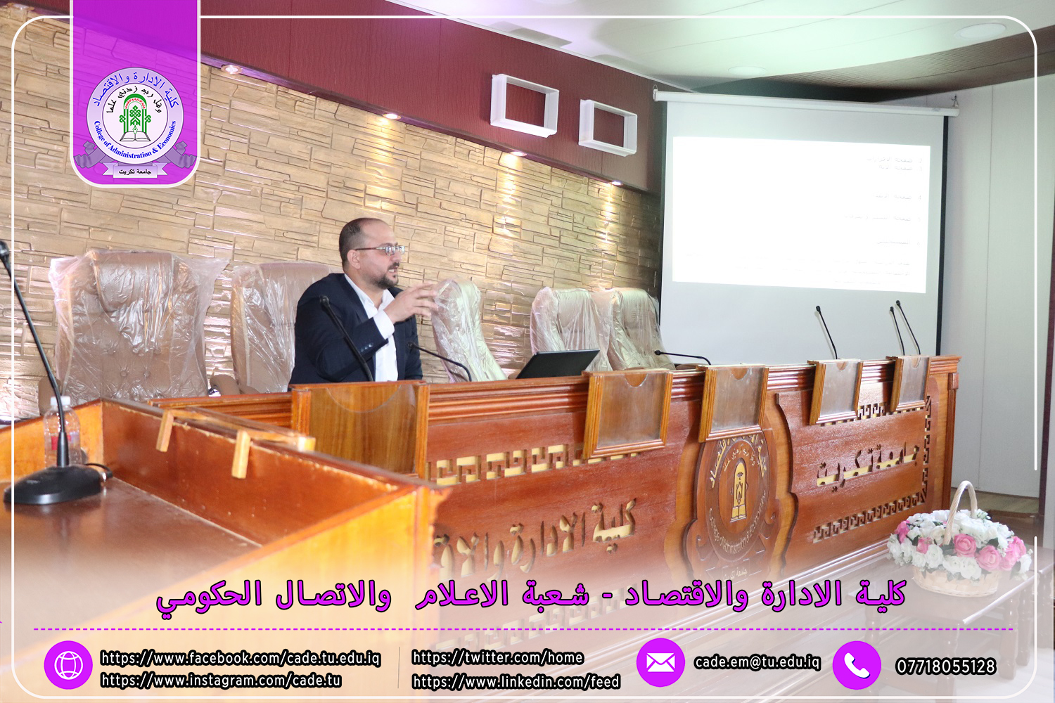برعاية الأستاذ الدكتور وعد محمود رؤوف، رئيس جامعة تكريت، وبإشراف الأستاذ الدكتور عبد الرزاق حمد حسين، عميد كلية الإدارة والاقتصاد، نظم قسم إدارة الأعمال ندوة علمية حضورية بعنوان "المتطلبات الشكلية لإعداد الرسائل والأطاريح الجامعية"، وذلك يوم الأربعاء الموافق 27 /11/ 2024، على قاعة الدكتور محمد بدع.