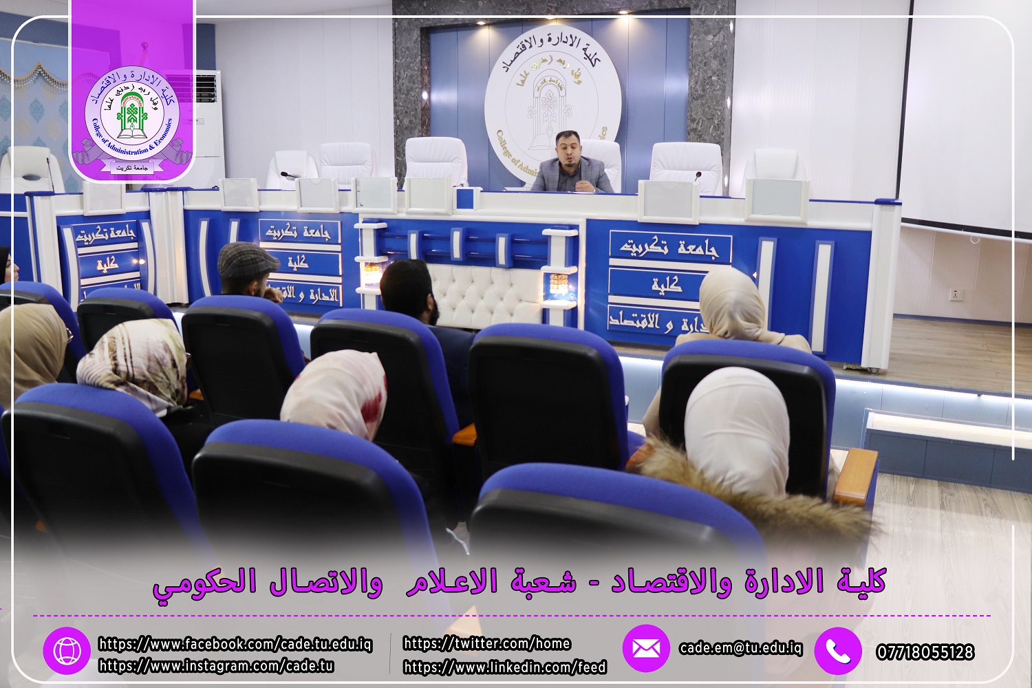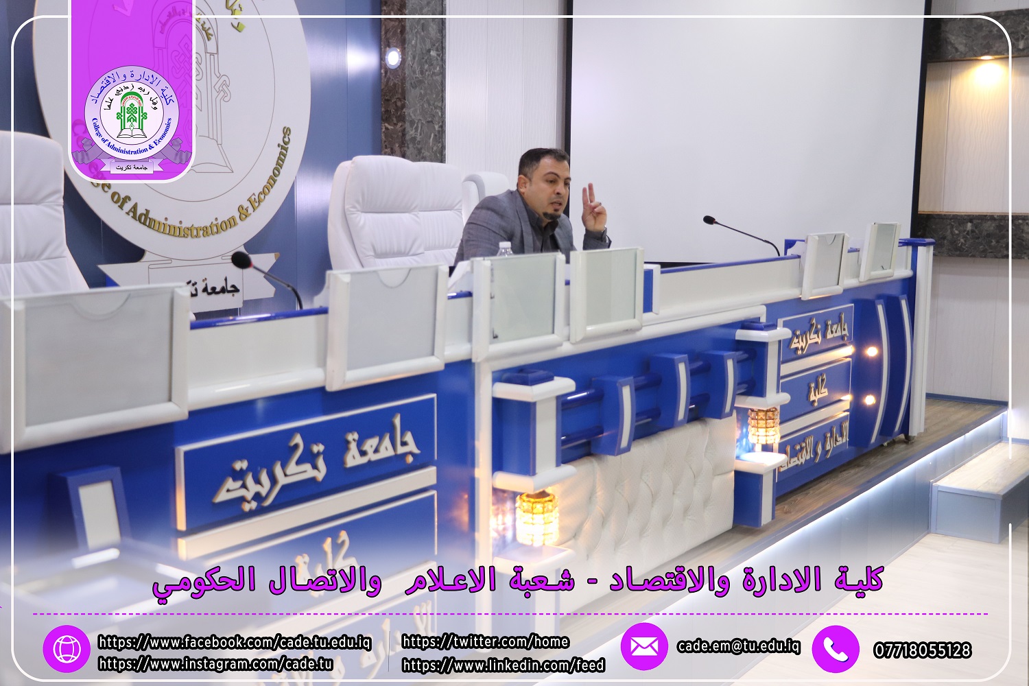 برعاية الأستاذ الدكتور وعد محمود رؤوف، رئيس جامعة تكريت، وإشراف الأستاذ الدكتور عبد الرزاق حمد حسين، عميد كلية الإدارة والاقتصاد، نظم قسم العلوم المالية والمصرفية يوم الثلاثاء الموافق 3 /12/ 2024، ندوة علمية حضورية بعنوان "كيفية كتابة البحث العلمي"، وذلك على قاعة الدكتور محمد بدع.