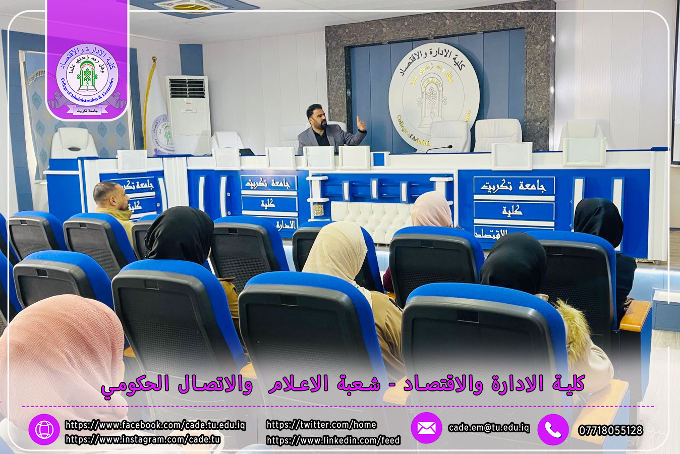 برعاية الأستاذ الدكتور وعد محمود رؤوف، رئيس جامعة تكريت، وإشراف الأستاذ الدكتور عبد الرزاق حمد حسين، عميد كلية الإدارة والاقتصاد، نظم قسم ادارة الاعمال يوم الأحد الموافق 8 /12/ 2024، ندوة علمية حضورية بعنوان "متطلبات تحقق الرصانة البحثية في رسائل الماجستير واطاريح الدكتوراه والبحوث العلمية".
