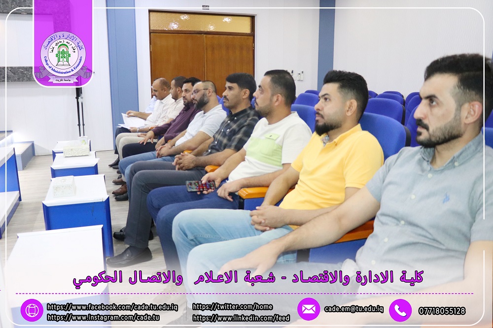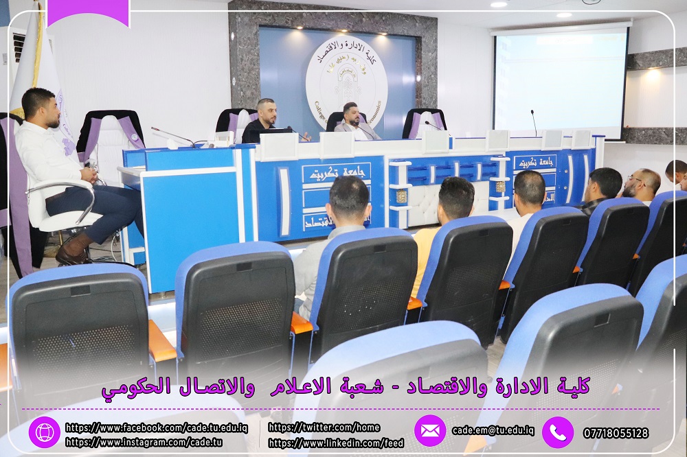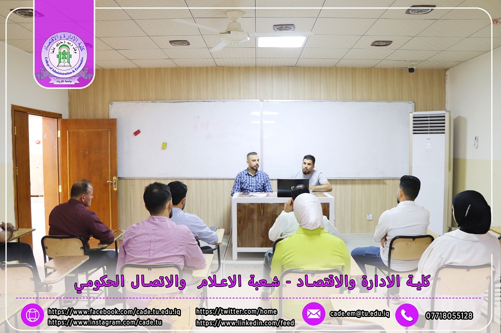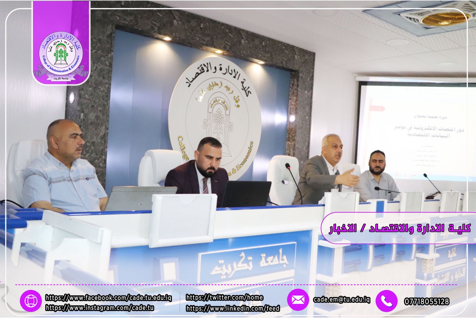برعاية الأستاذ الدكتور وعد محمود رؤوف، رئيس جامعة تكريت، وبإشراف الأستاذ الدكتور عبد الرزاق حمد حسين، عميد كلية الإدارة والاقتصاد، نظمت الكلية بالتعاون مع مركز التعليم المستمر دورة علمية حضورية بعنوان ( التداول الإلكتروني: الإيجابيات والسلبيات ) أقيمت الدورة على مدار يومين، بدأت يوم الثلاثاء الموافق 2024/9/17 واختتمت يوم الأربعاء الموافق 2024/9/18، بمشاركة عدد من المحاضرين ، من بينهم م.د. نعمان منذر يونس، م.م. خلدون عبدالله خلف، و م.م.غزوان شاكر إسماعيل.