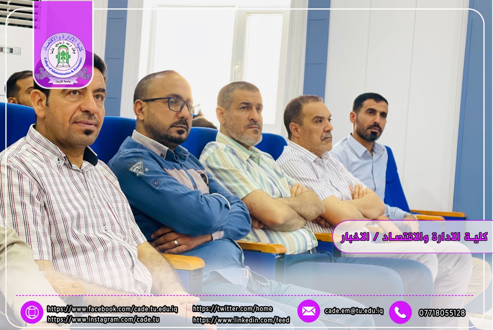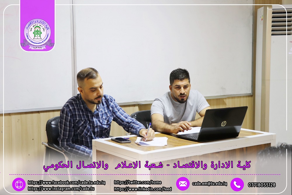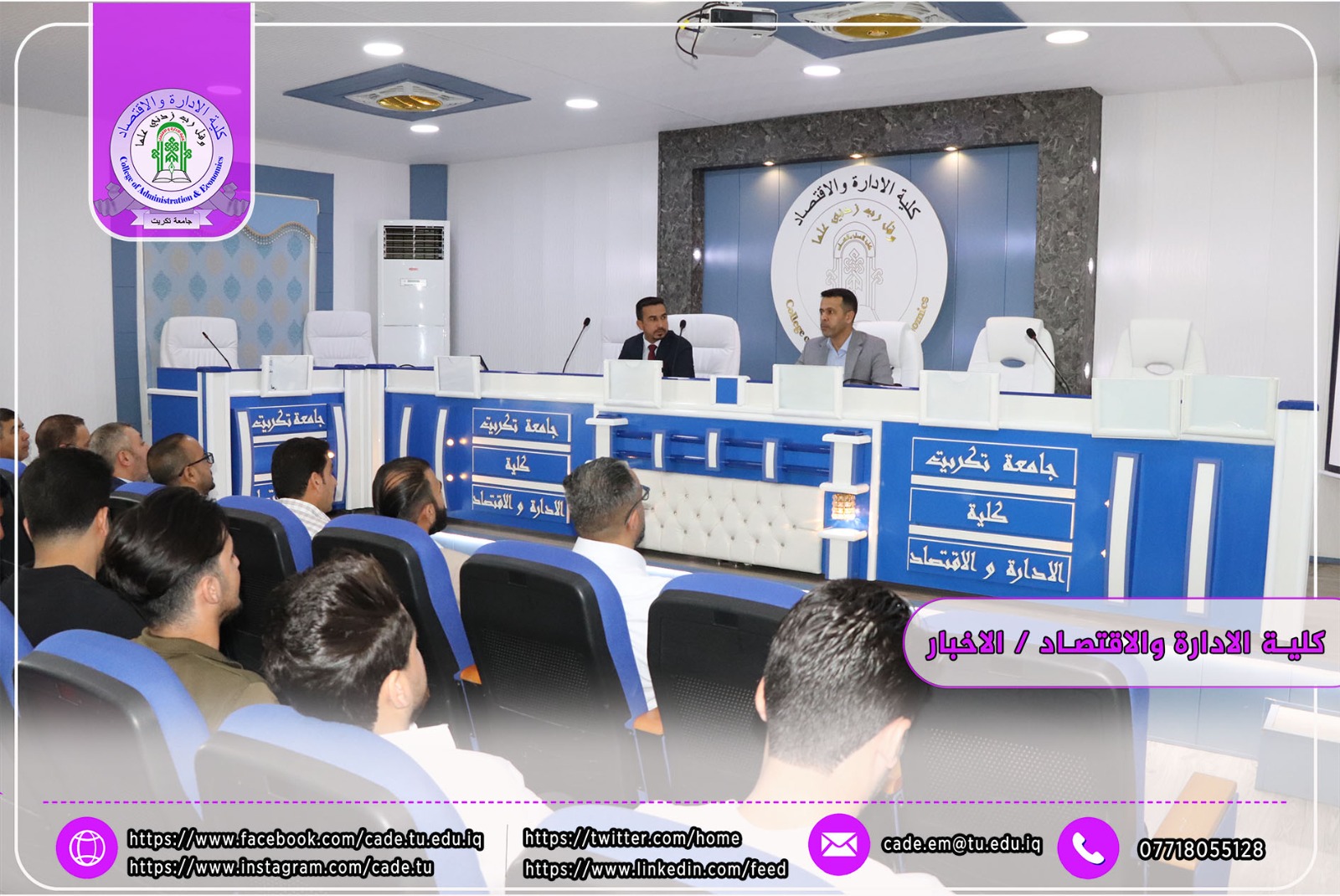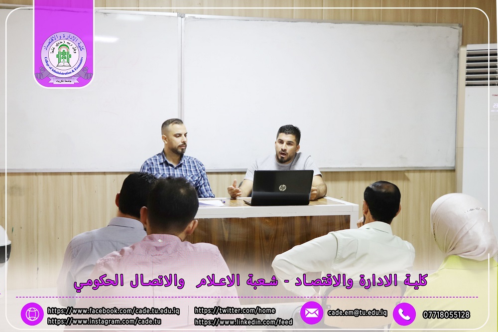 برعاية الأستاذ الدكتور وعد محمود رؤوف، رئيس جامعة تكريت، وبإشراف الأستاذ الدكتور عبد الرزاق حمد حسين، عميد كلية الإدارة والاقتصاد، نظمت الكلية بالتعاون مع مركز التعليم المستمر دورة علمية حضورية بعنوان ( التداول الإلكتروني: الإيجابيات والسلبيات ) أقيمت الدورة على مدار يومين، بدأت يوم الثلاثاء الموافق 2024/9/17 واختتمت يوم الأربعاء الموافق 2024/9/18، بمشاركة عدد من المحاضرين ، من بينهم م.د. نعمان منذر يونس، م.م. خلدون عبدالله خلف، و م.م.غزوان شاكر إسماعيل.