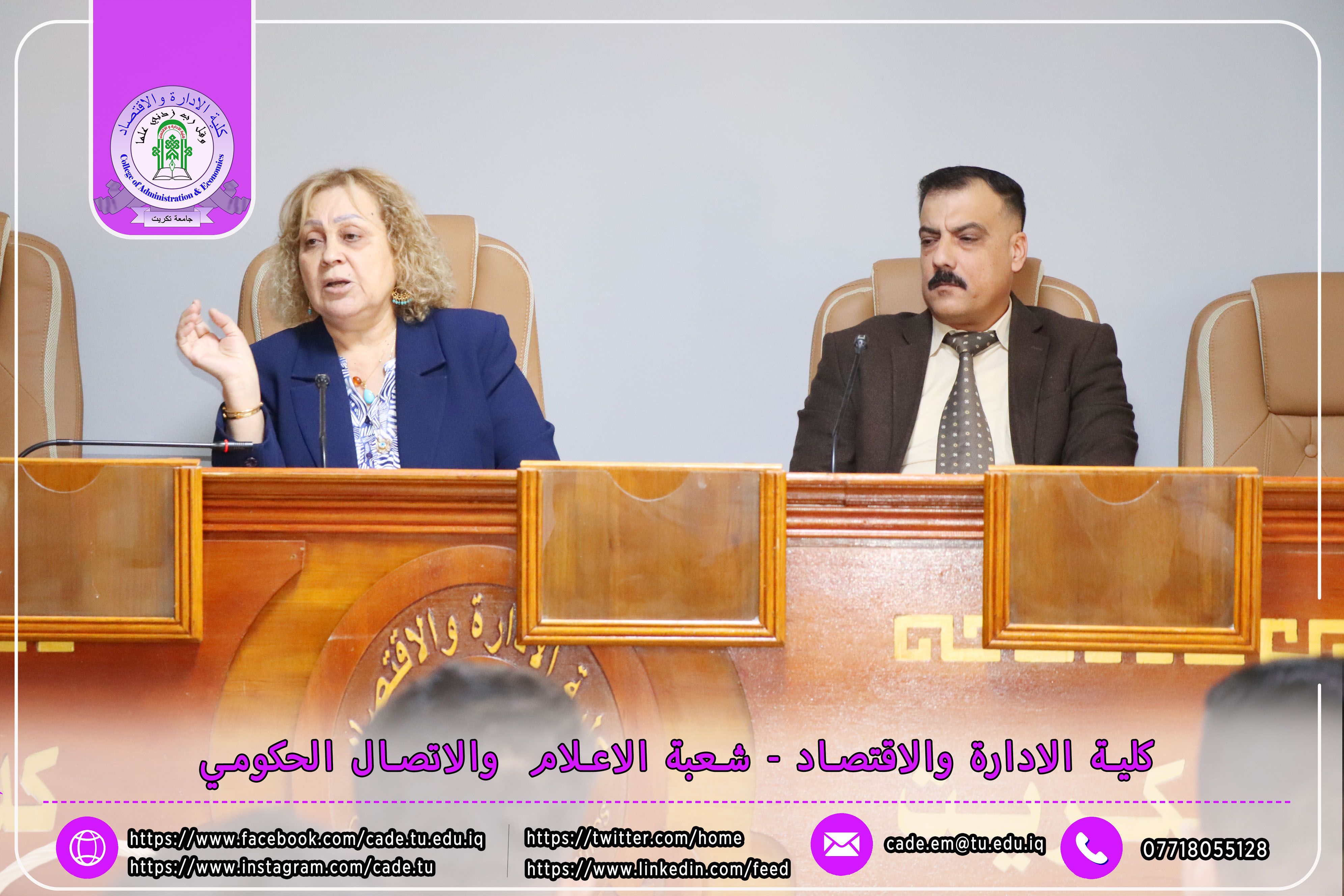 برعاية الأستاذ الدكتور وعد محمود رؤوف رئيس جامعة تكريت، وبإشراف الأستاذ المساعد الدكتور فؤاد فرحان حسين عميد كلية الإدارة والاقتصاد، نظّم قسم إدارة التسويق صباح يوم الثلاثاء الموافق 25/11/2025 ندوة علمية حملت عنوان "الكايزن في المؤسسات التعليمية"، وذلك في تمام الساعة العاشرة صباحًا على قاعة قسم إدارة الأعمال.