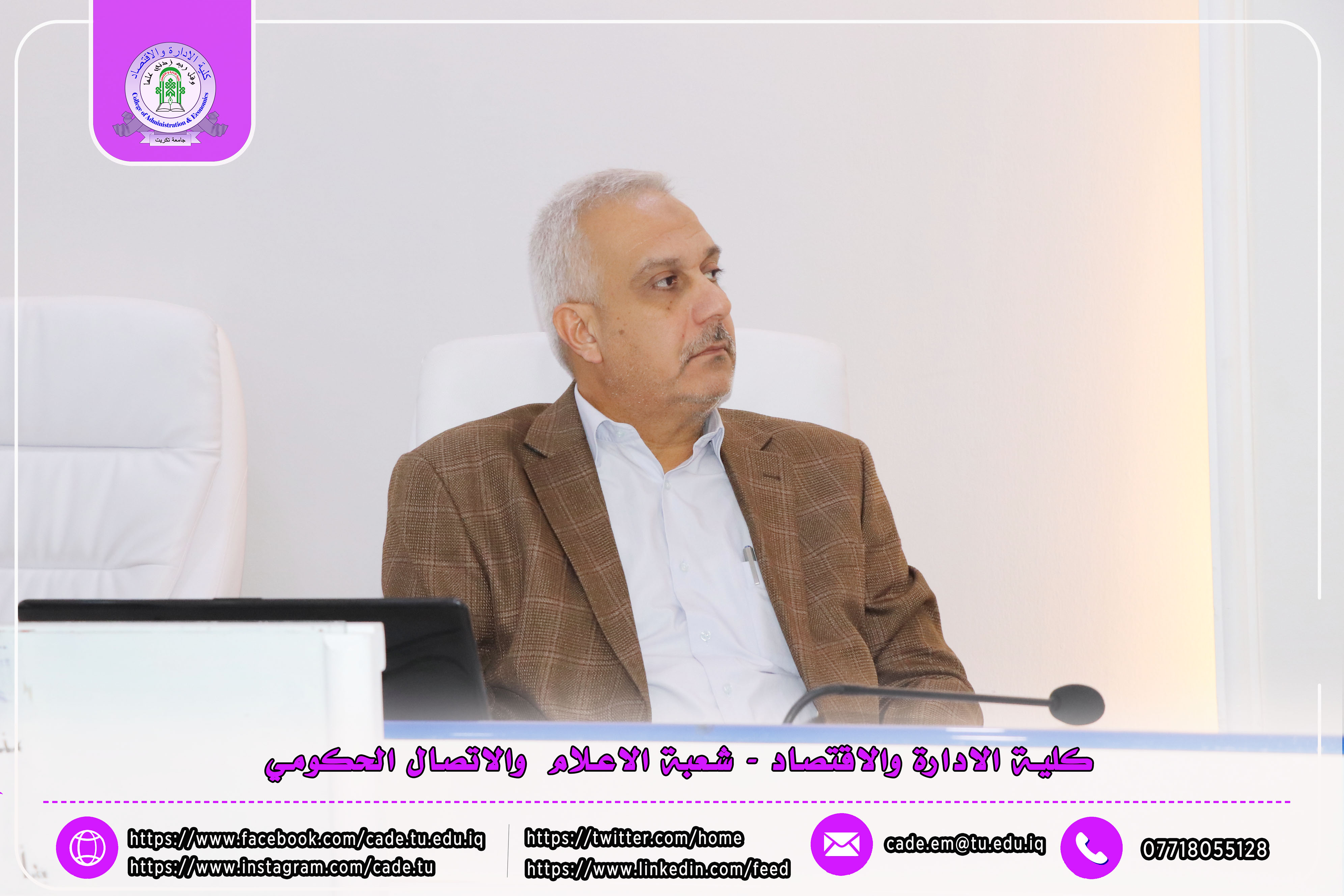 برعاية الأستاذ الدكتور وعد محمود رؤوف رئيس جامعة تكريت، وبإشراف كلٍّ من الأستاذ المساعد الدكتور فؤاد فرحان حسين عميد كلية الإدارة والاقتصاد، والأستاذ المساعد الدكتور سياف عبد حسين مدير مركز التعليم المستمر، نظّمت عمادة الكلية وبالتعاون مع مركز التعليم المستمر أعمال دورة علمية حضورية بعنوان ( الاقتصاد السلوكي وصناعة السياسات العامة في العصر الرقمي )، وذلك يوم الأربعاء الموافق 4/12/2025، في تمام الساعة العاشرة صباحاً، على قاعة الدكتور محمد بدع.