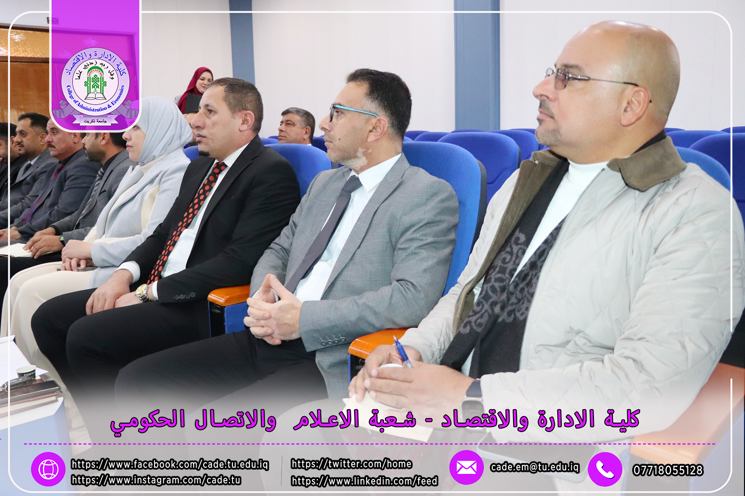 استضافت عمادة كلية الإدارة والاقتصاد، الدورة العلمية بعنوان "التخطيط والتنظيم والرقابة"، التي نظمها مركز التعليم المستمر في جامعة تكريت، وذلك يوم الأحد الموافق 2025/1/19 على قاعة الدكتور محمد بدع.