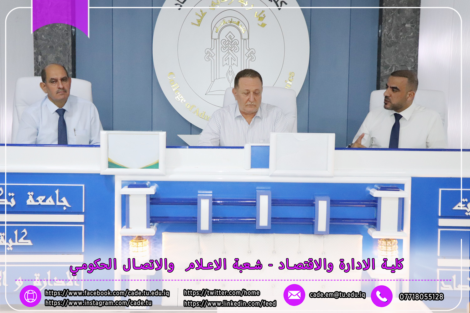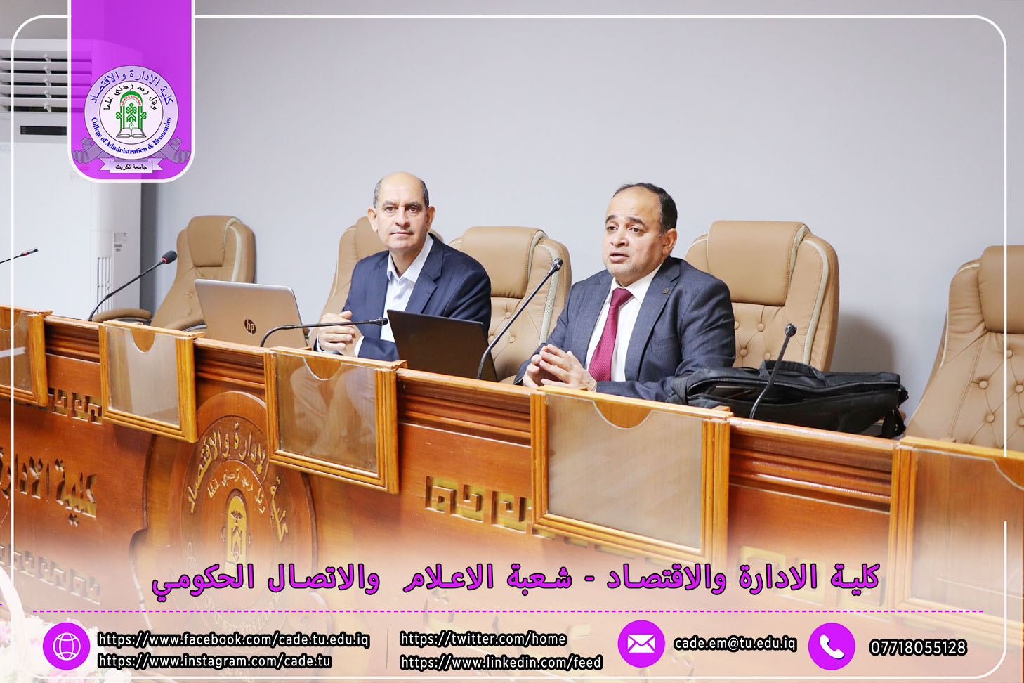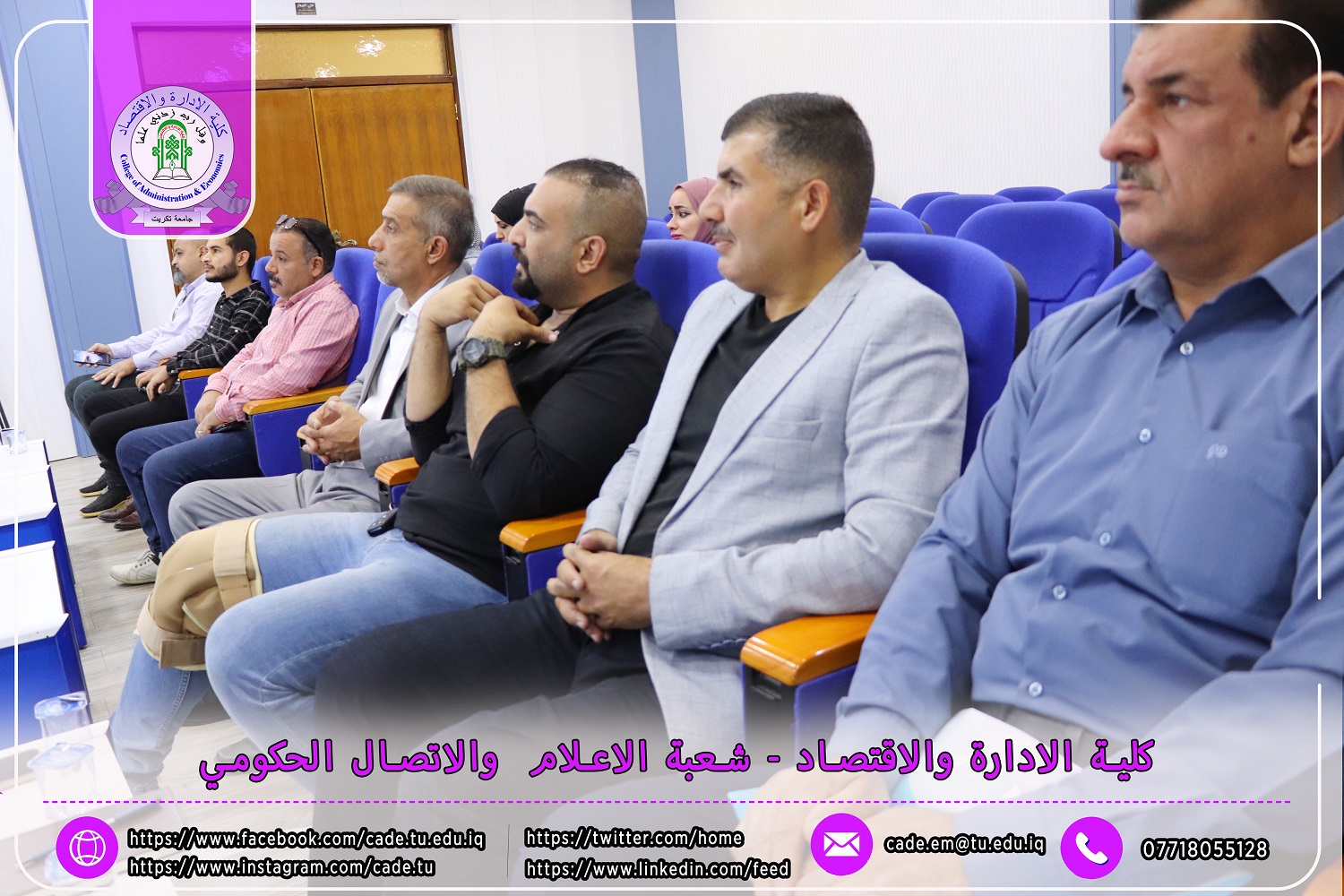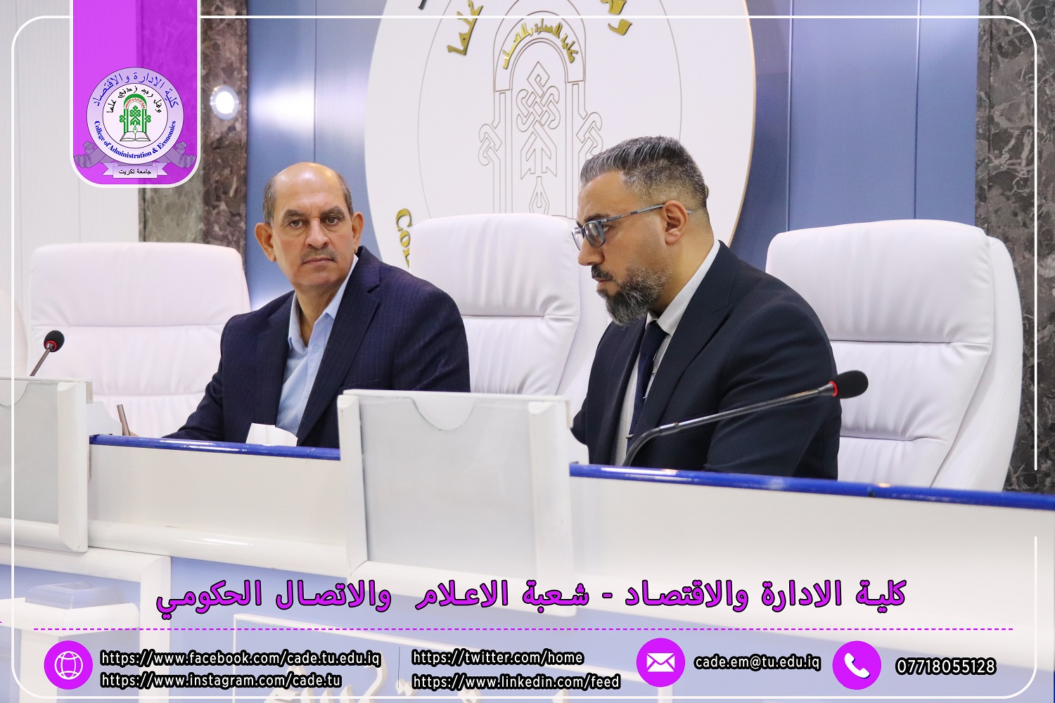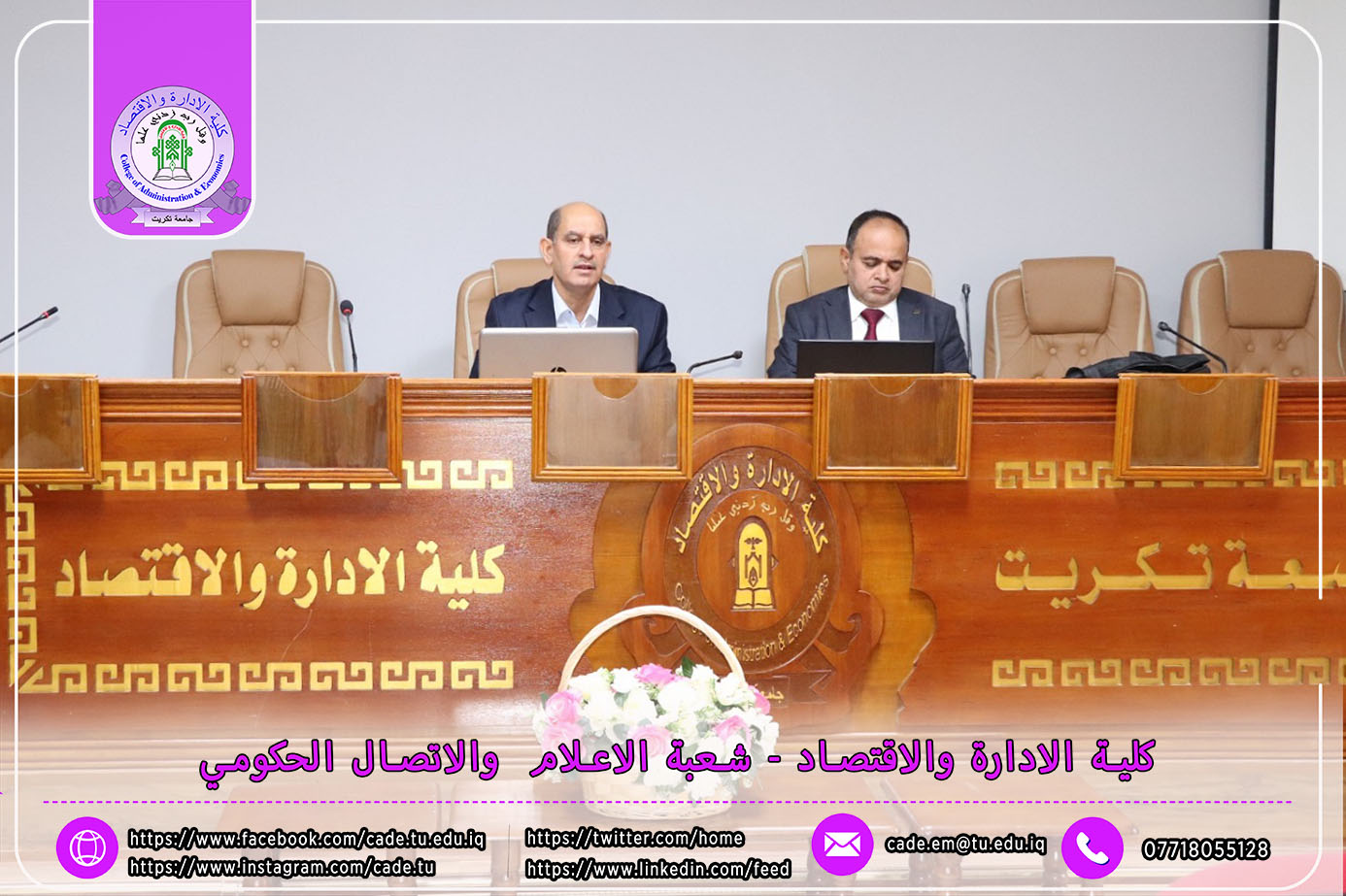 برعاية الأستاذ الدكتور وعد محمود رؤوف، رئيس جامعة تكريت، وبإشراف الأستاذ المساعد الدكتور فؤاد فرحان حسين، عميد كلية الإدارة والاقتصاد، نظمت وحدة التأهيل والتوظيف والمتابعة ندوة علمية حضورية بعنوان: "ريادة الأعمال – الفرص والتحديات"، وذلك يوم الاثنين الموافق 14 /4/ 2025، على قاعة قسم ادارة الاعمال في كلية الإدارة والاقتصاد.