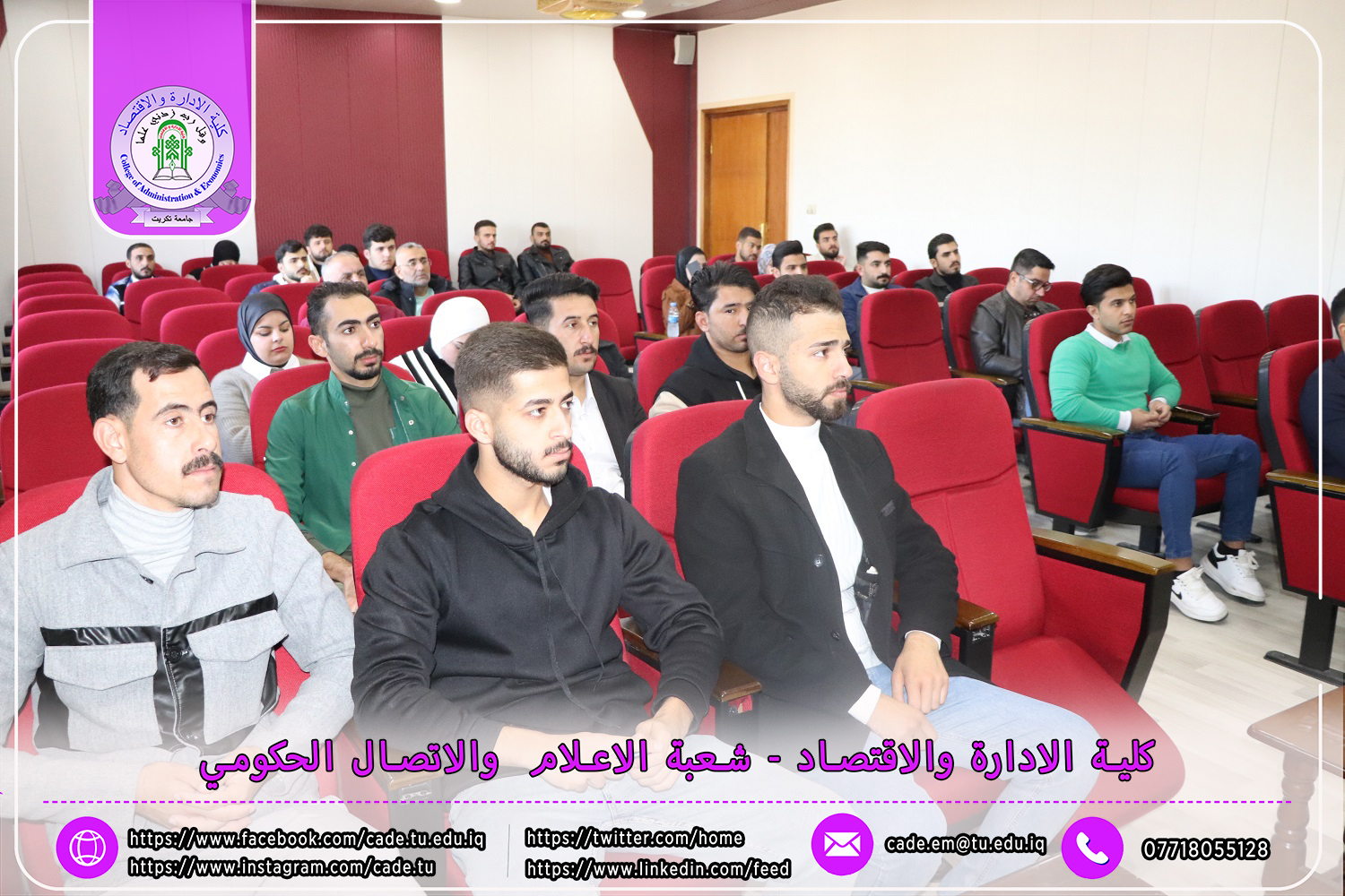 برعاية الأستاذ الدكتور وعد محمود رؤوف، رئيس جامعة تكريت، وبإشراف الأستاذ الدكتور عبد الرزاق حمد حسين، عميد كلية الإدارة والاقتصاد، نظمت وحدة الإرشاد النفسي والتوجيه التربوي بمناسبة اليوم الخامس للأسبوع الارشادي ندوة علمية حضورية بعنوان "الابتزاز الإلكتروني وكيفية الوقاية منه"، وذلك يوم الخميس الموافق 28 /11/ 2024، على قاعة قسم إدارة الأعمال.