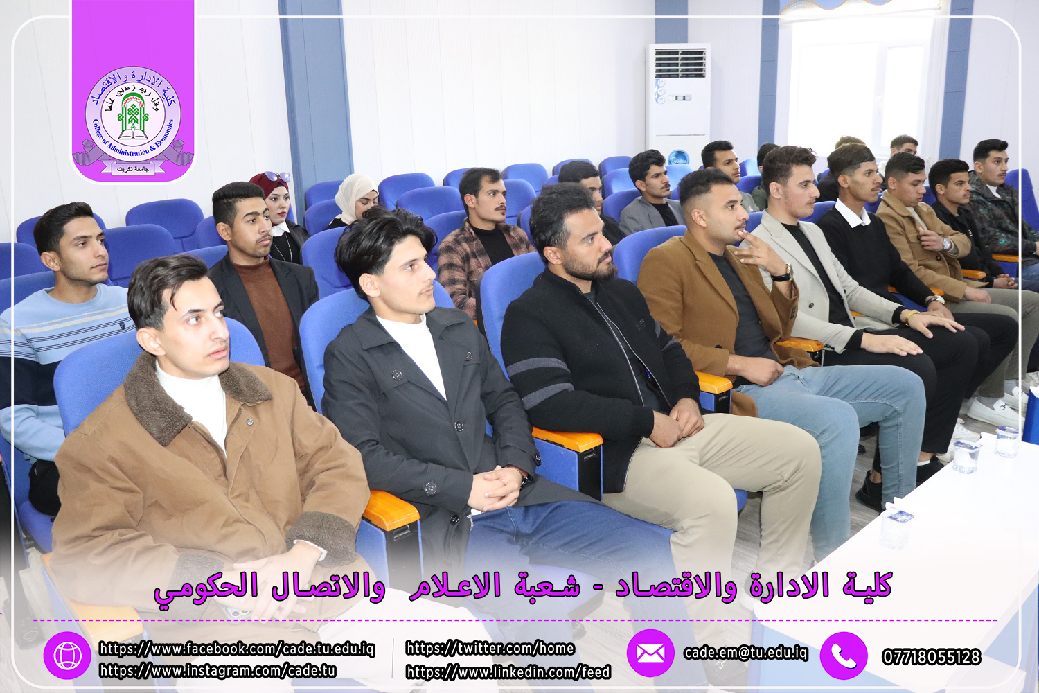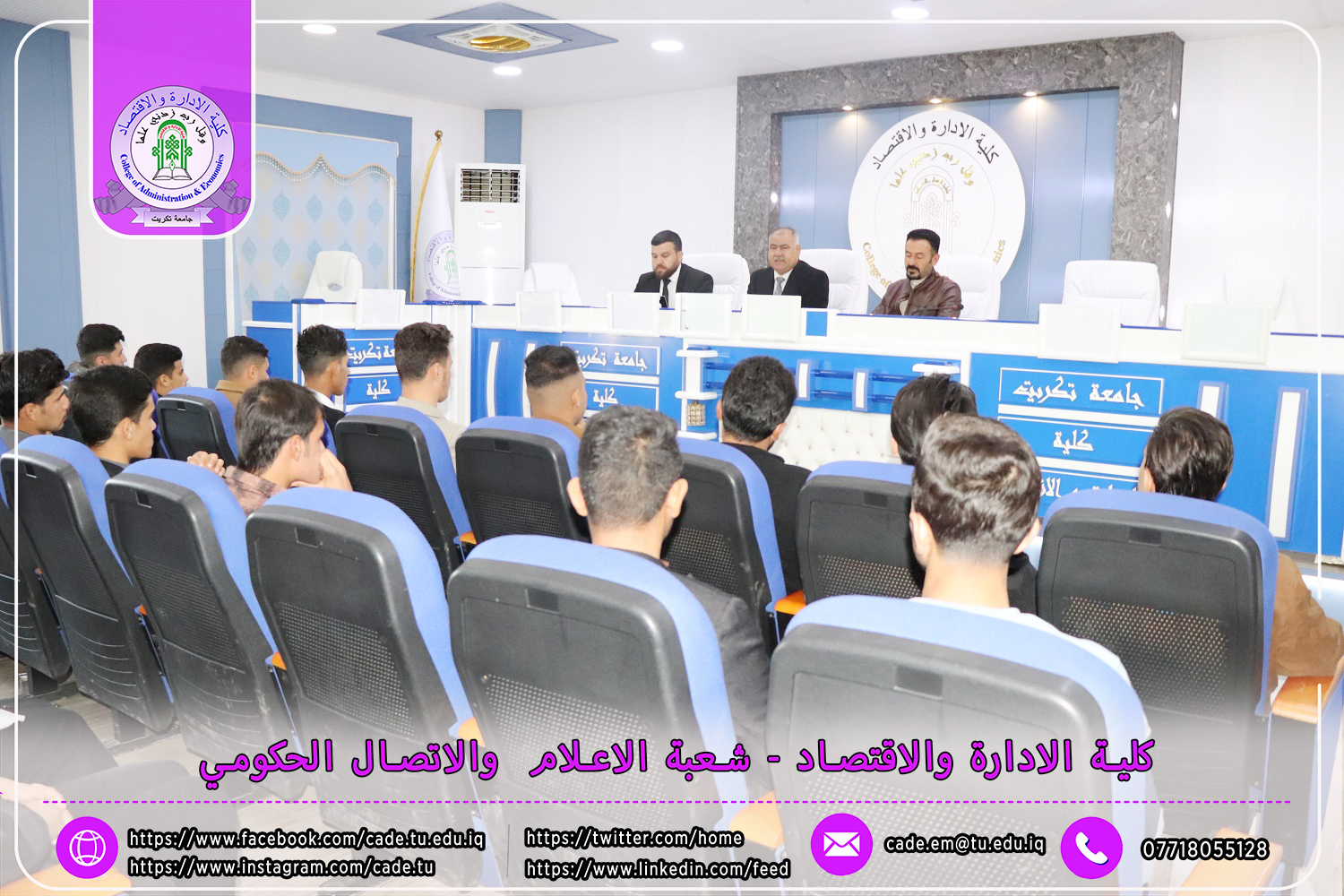 برعاية الأستاذ الدكتور وعد محمود رؤوف، رئيس جامعة تكريت، وإشراف الأستاذ الدكتور عبد الرزاق حمد حسين، عميد كلية الإدارة والاقتصاد، نظمت وحدة الإرشاد النفسي والتوجيه التربوي ندوة علمية بعنوان "المخدرات وآثارها على الفرد والمجتمع"، وذلك بمناسبة الأسبوع العراقي لمكافحة المخدرات، يوم الخميس الموافق 5 /12/ 2024، على قاعة الدكتور محمد بدع في الكلية.