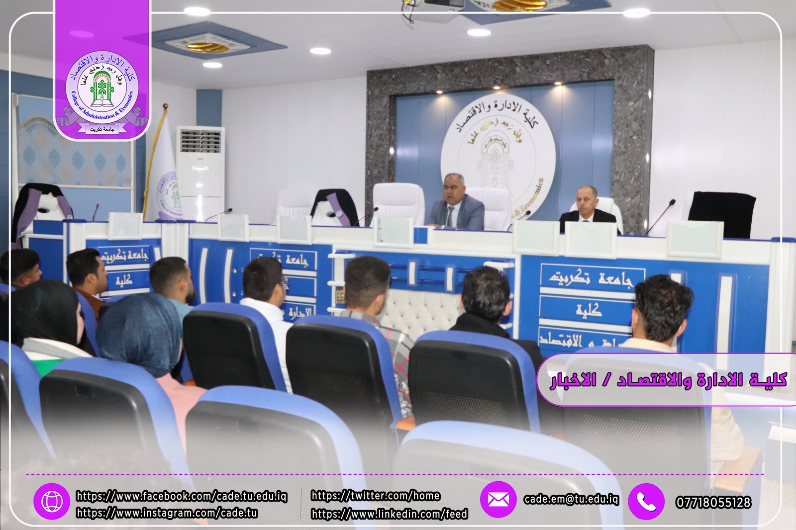 برعاية الأستاذ الدكتور وعد محمود رؤوف، رئيس جامعة تكريت، وبإشراف الأستاذ الدكتور عبد الرزاق حمد حسين، عميد كلية الإدارة والاقتصاد، نظّمت وحدة الإرشاد النفسي والتوجيه التربوي بمناسبة الأسبوع الارشادي ندوة توعوية بعنوان "المخدرات: ظاهرة خطيرة يجب معالجتها جذرياً"، وذلك يوم الاحد الموافق 26/1/2025 في قاعة الدكتور محمد بدع.