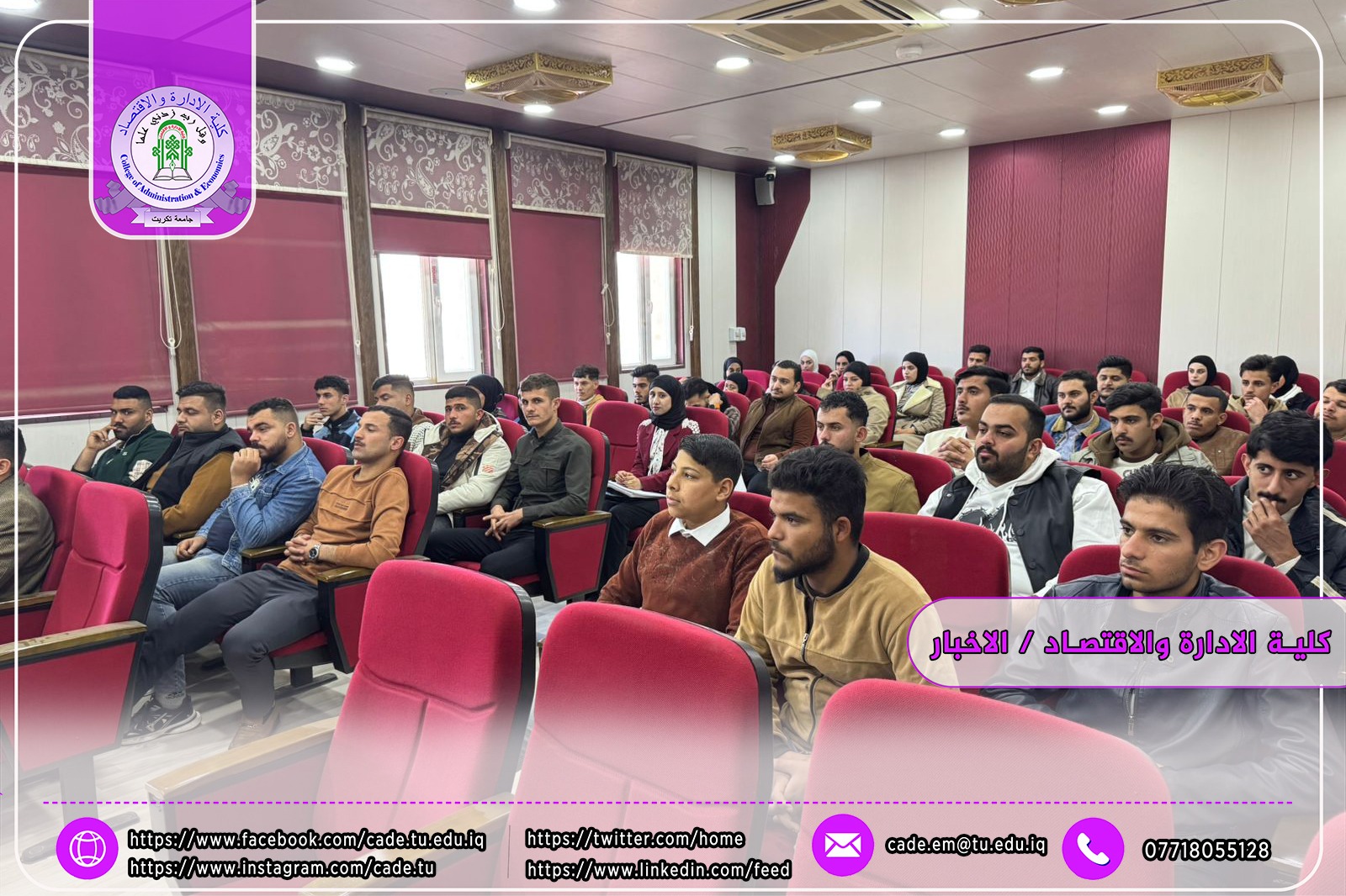 برعاية الأستاذ الدكتور وعد محمود رؤوف، رئيس جامعة تكريت، وبإشراف الأستاذ الدكتور عبد الرزاق حمد حسين، عميد كلية الإدارة والاقتصاد، نظّمت وحدة الإرشاد النفسي والتوجيه التربوي ندوة توعوية بعنوان "المخدرات كارثة يجب اقتلاعها من المجتمع"، وذلك يوم الأربعاء الموافق 29/1/2025 في قاعة مناقشات قسم إدارة الاعمال.