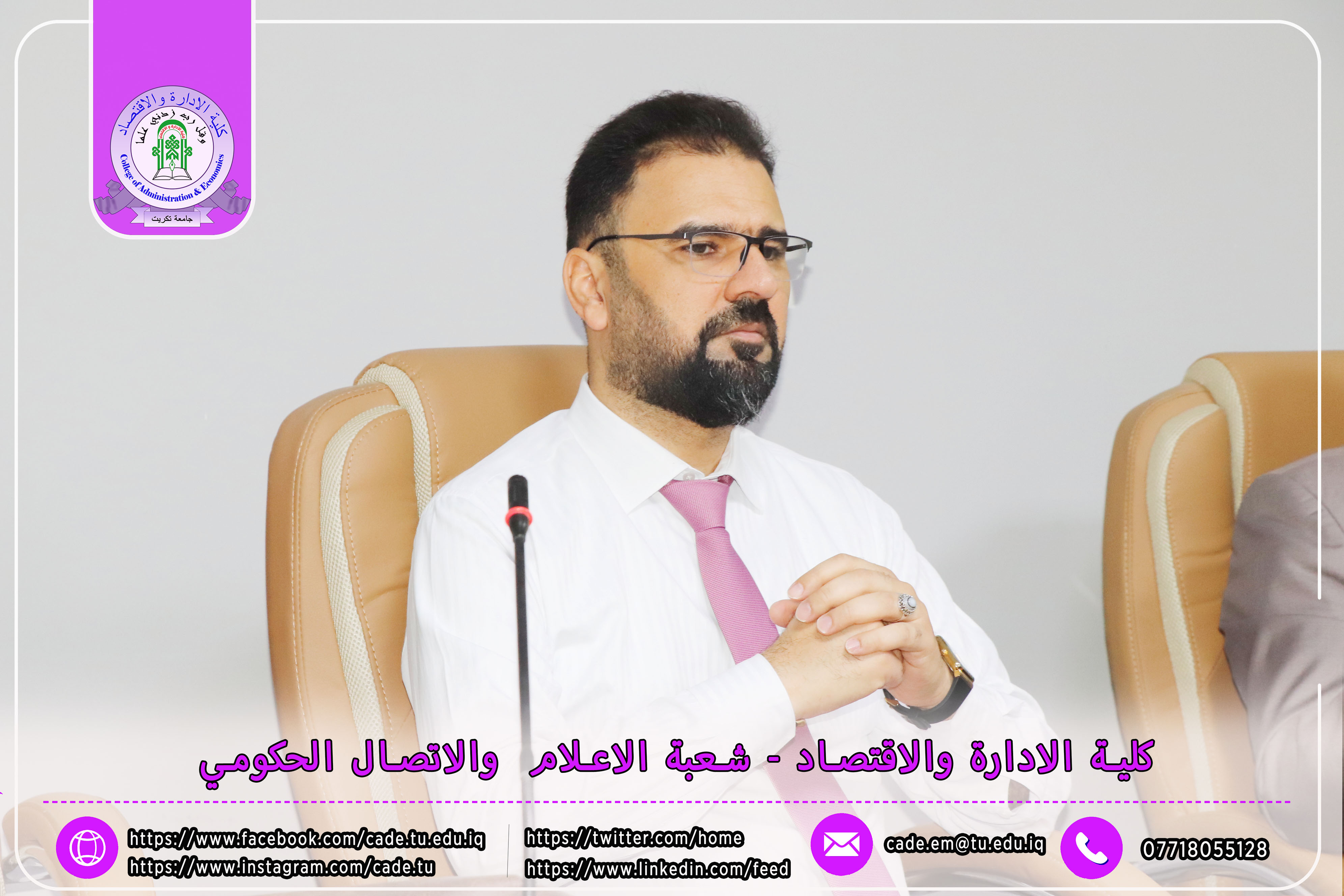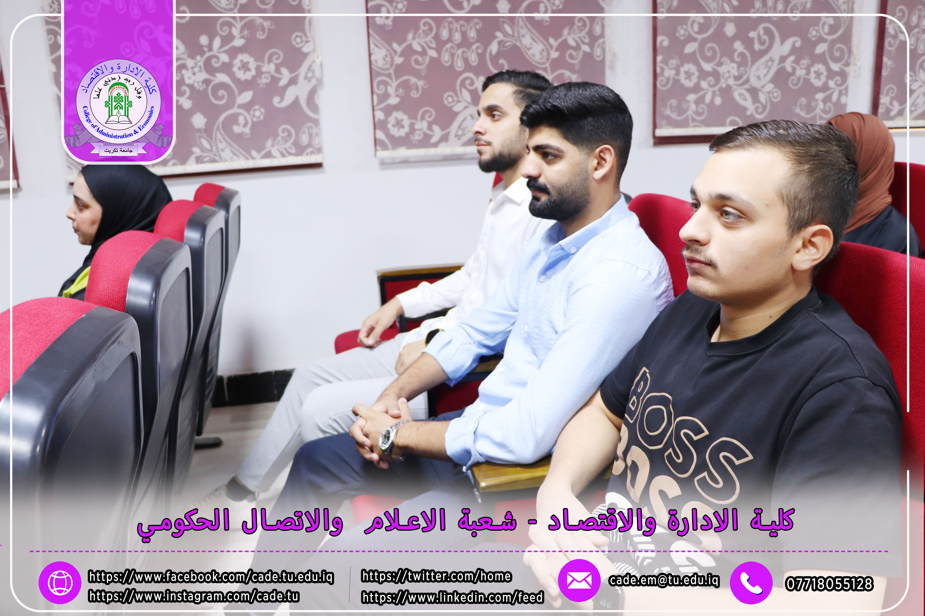 برعاية الأستاذ الدكتور وعد محمود رؤوف، رئيس جامعة تكريت، وبإشراف الأستاذ المساعد الدكتور فؤاد فرحان حسين، عميد كلية الإدارة والاقتصاد، نظّمت وحدة الإرشاد النفسي والتوجيه التربوي في الكلية ندوةً علميةً بعنوان "إجراءات مكافحة ظاهرة الغش في الامتحانات الجامعية"، وذلك يوم الثلاثاء الموافق 2025/10/21 في تمام الساعة العاشرة صباحًا على قاعة قسم إدارة الأعمال.