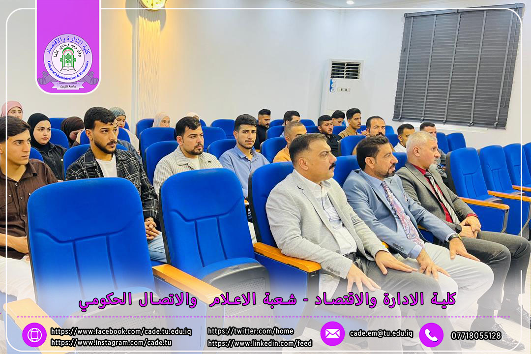 برعاية الأستاذ الدكتور وعد محمود رؤوف، رئيس جامعة تكريت، وبإشراف الأستاذ المساعد الدكتور فؤاد فرحان حسين، عميد كلية الإدارة والاقتصاد، نظّمت وحدة الإرشاد النفسي والتوجيه التربوي ندوة علمية بعنوان "ظاهرة المخدرات: الأسباب والمعالجة"، وذلك ضمن فعاليات الأسبوع العراقي لمكافحة المخدرات، وذلك يوم الأحد الموافق 16/11/2025، في تمام الساعة العاشرة صباحًا على قاعة الدكتور محمد بدع.