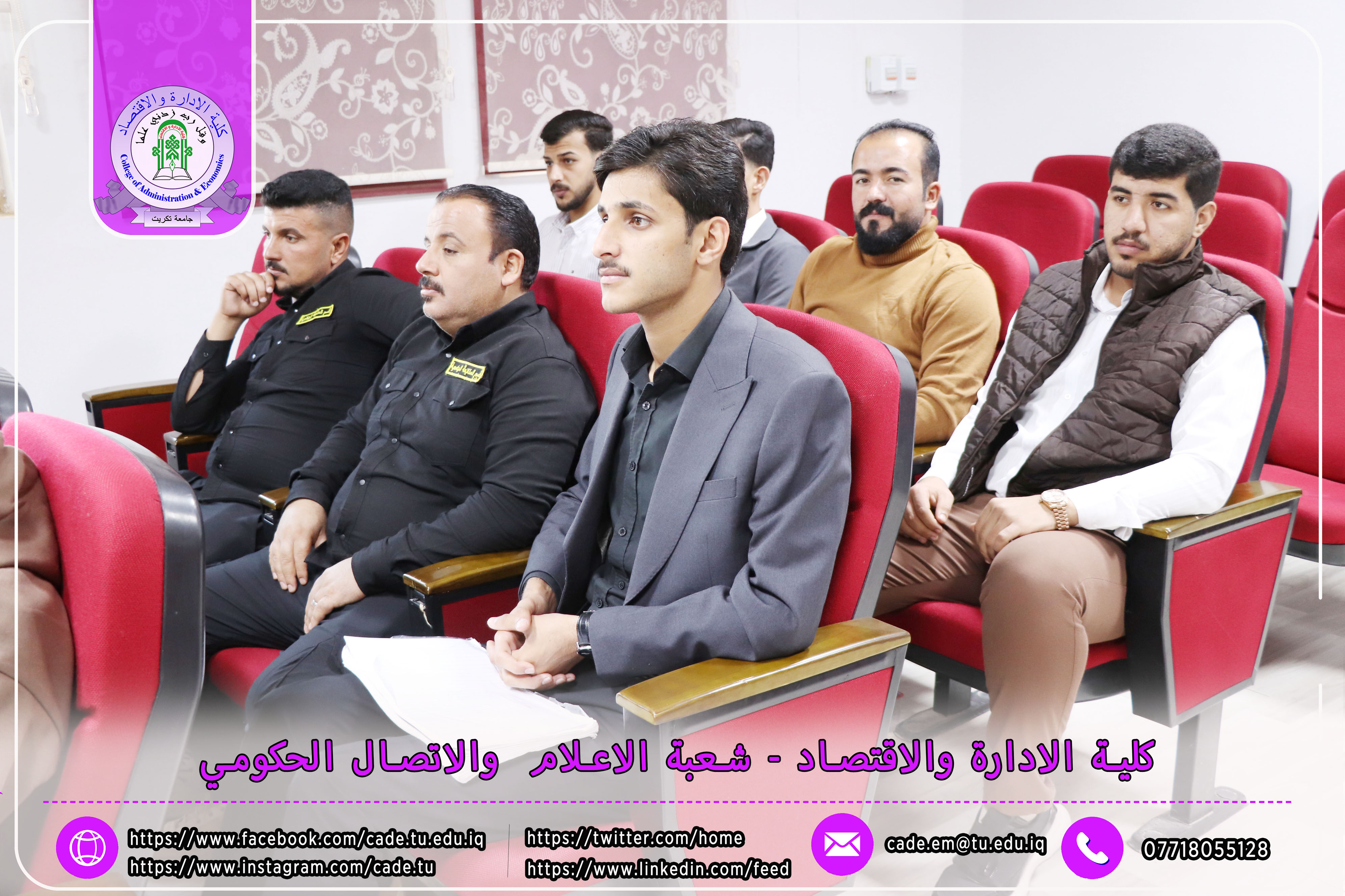 برعاية الأستاذ الدكتور وعد محمود رؤوف رئيس جامعة تكريت، وبإشراف الأستاذ المساعد الدكتور فؤاد فرحان حسين عميد كلية الإدارة والاقتصاد، وضمن فعاليات الأسبوع العراقي لمكافحة المخدرات، نظّمت وحدة الإرشاد النفسي والتوجيه التربوي في الكلية ندوة علمية بعنوان "كارثة المخدرات والحلول المقترحة"، وذلك في اليوم الثاني من فعاليات الأسبوع، يوم الاثنين الموافق 17/11/2025، في تمام الساعة العاشرة صباحًا على قاعة قسم إدارة الأعمال.