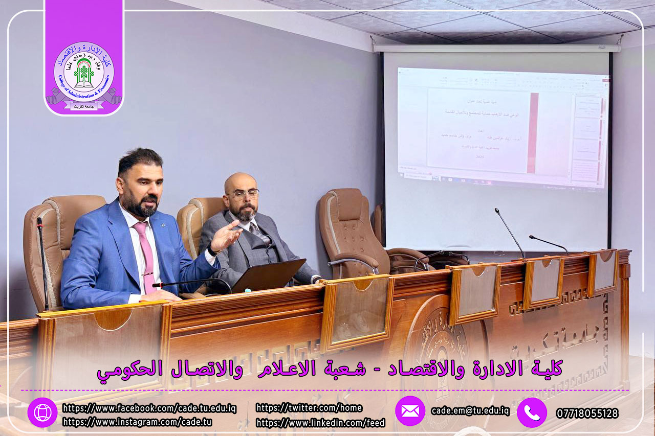 برعاية الأستاذ الدكتور وعد محمود رؤوف رئيس جامعة تكريت، وإشراف الأستاذ المساعد الدكتور فؤاد فرحان حسين عميد الكلية، وضمن جهود عمادة الكلية في تعزيز الأمن الفكري وترسيخ قيم السلم المجتمعي، نظّمت وحدة الارشاد النفسي والتوجيه التربوي ندوة علمية بعنوان "الوعي ضد الإرهاب حماية للمجتمع وللأجيال القادمة"، وذلك يوم الأحد الموافق 2025/12/07 في تمام الساعة 11:30 صباحًا على قاعة قسم إدارة الأعمال.