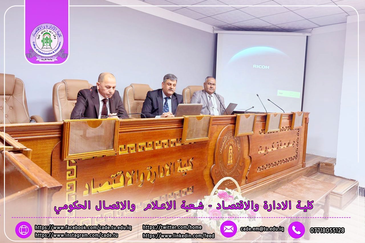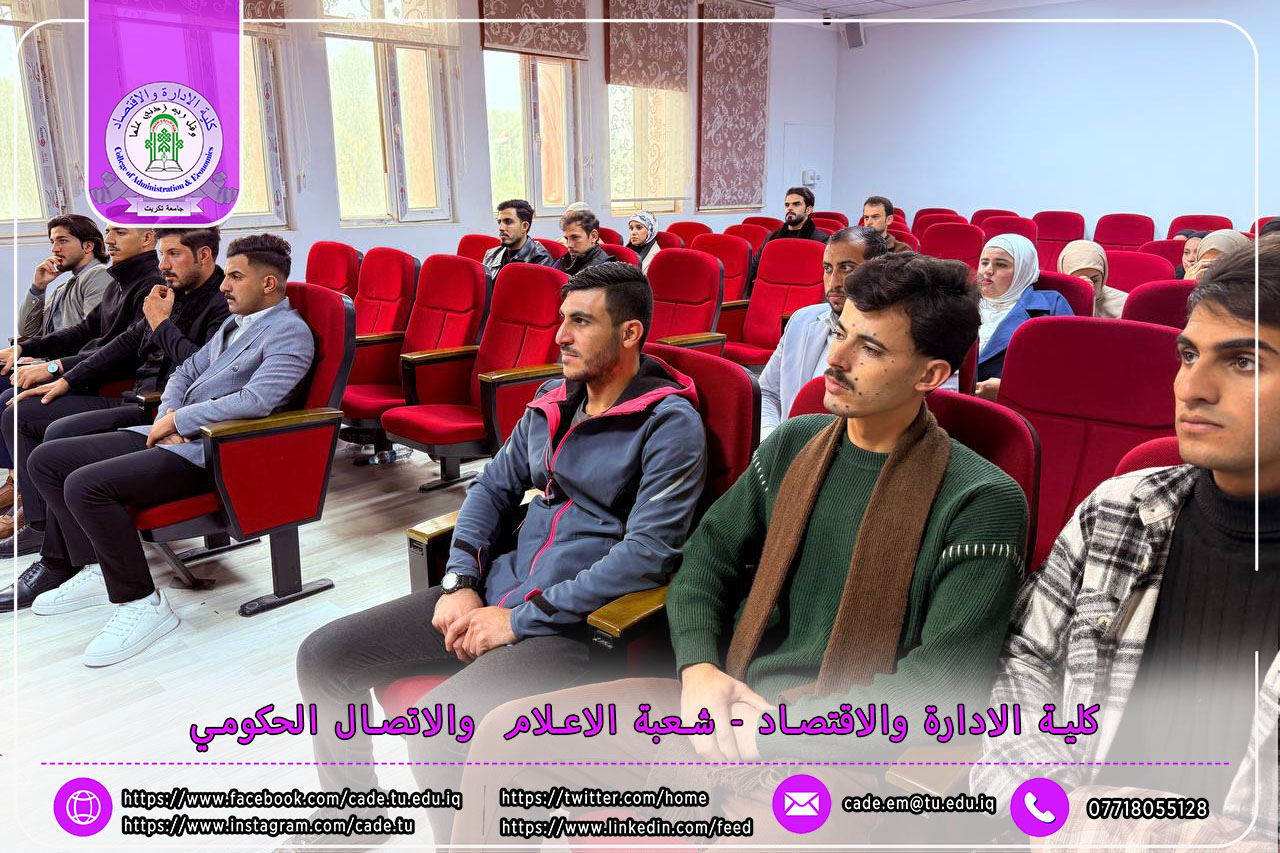 برعاية الأستاذ الدكتور وعد محمود رؤوف رئيس جامعة تكريت، وبإشراف الأستاذ المساعد الدكتور فؤاد فرحان حسين عميد كلية الإدارة والاقتصاد، وضمن جهود عمادة الكلية في تعزيز الوعي الفكري وترسيخ الاستخدام الآمن والمسؤول لمواقع التواصل الاجتماعي، نظّمت وحدة الإرشاد النفسي والتوجيه التربوي ندوة علمية بعنوان: