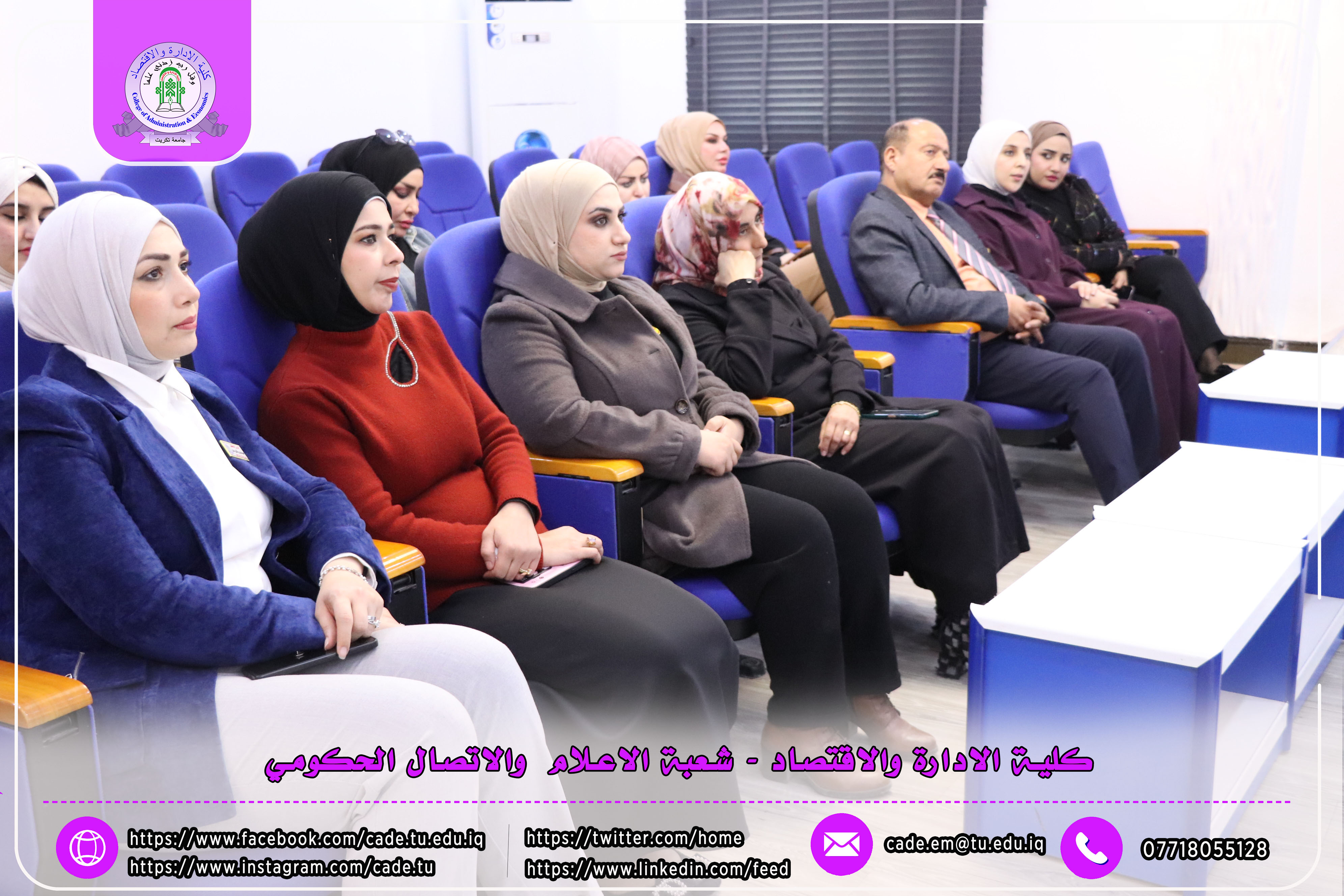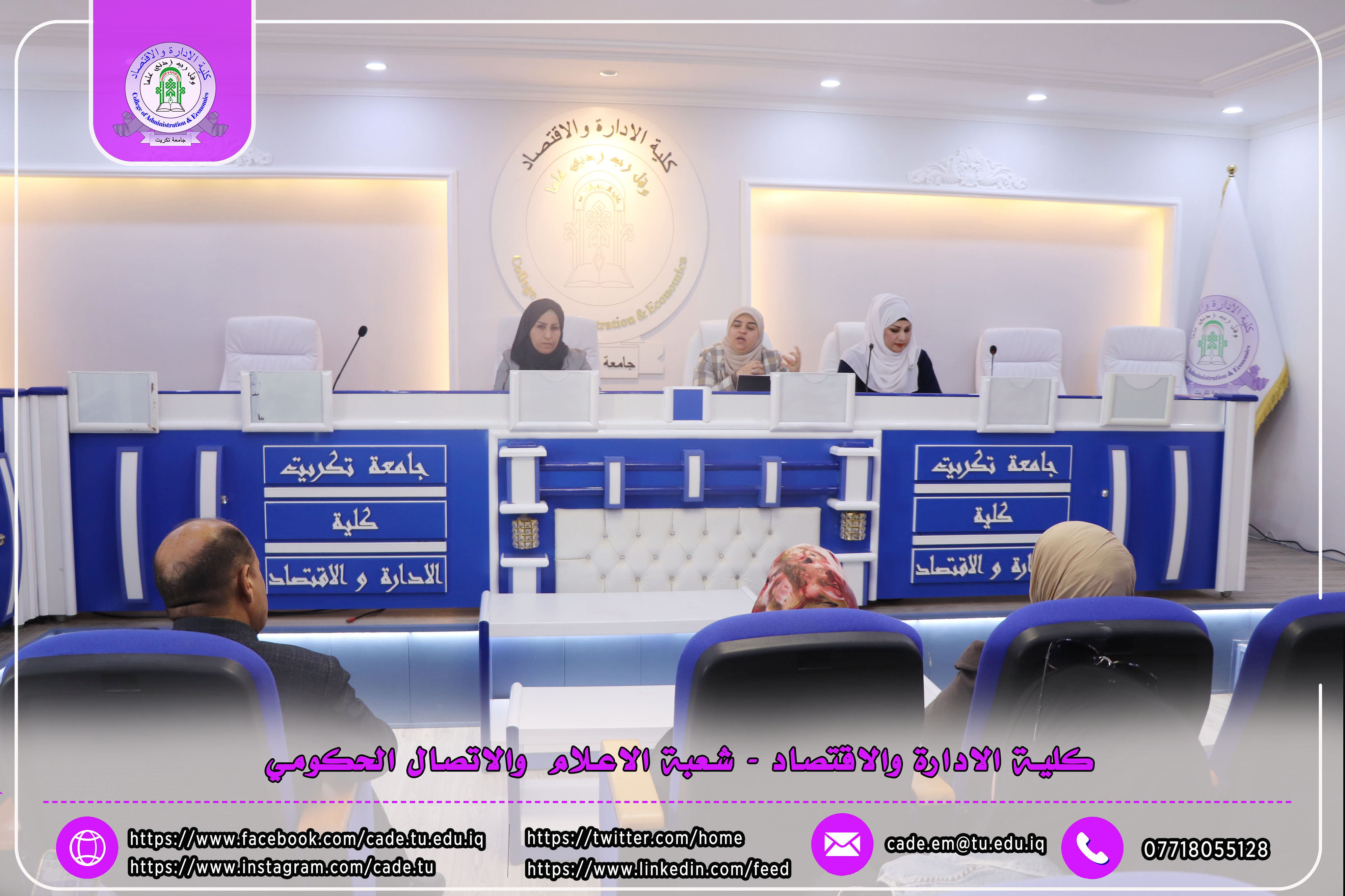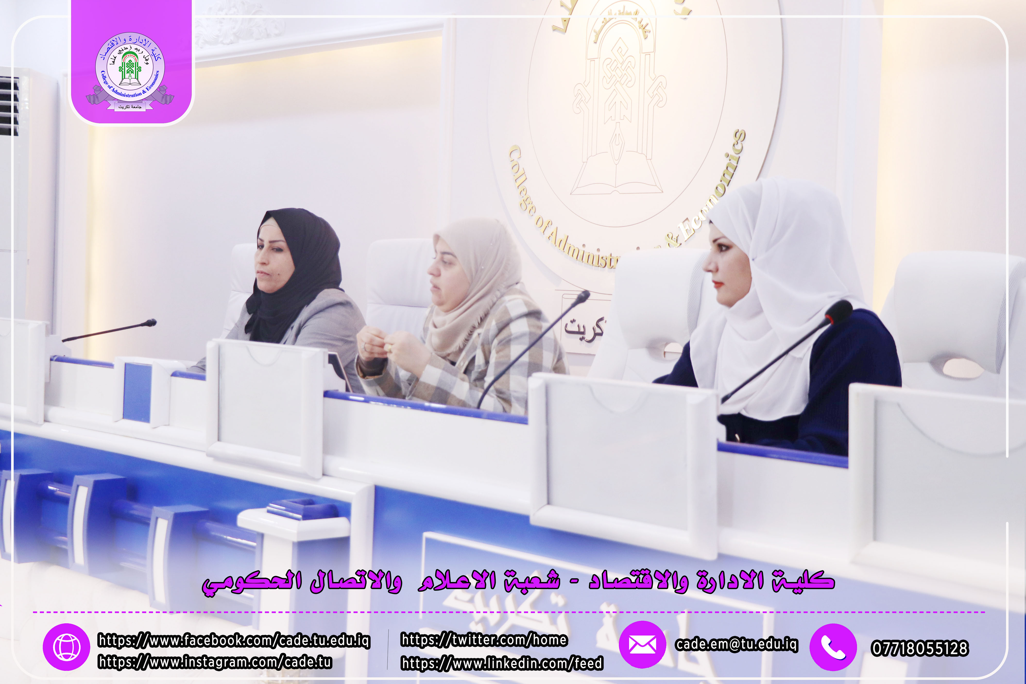 برعاية الأستاذ الدكتور وعد محمود رؤوف، رئيس جامعة تكريت، وبإشراف الأستاذ المساعد الدكتور فؤاد فرحان حسين عميد الكلية، نظّمت كلية الإدارة والاقتصاد / وحدة شؤون المرأة ضمن الخطة التنفيذية للاستراتيجية الوطنية للمرأة العراقية لعام (2026)، ندوة علمية حضورية بعنوان ( معوّقات تمويل المشاريع الصغيرة ودخول المرأة إلى سوق العمل في العراق)، وذلك يوم الخميس الموافق 2025/02/05، على قاعة الدكتور محمد بدع.